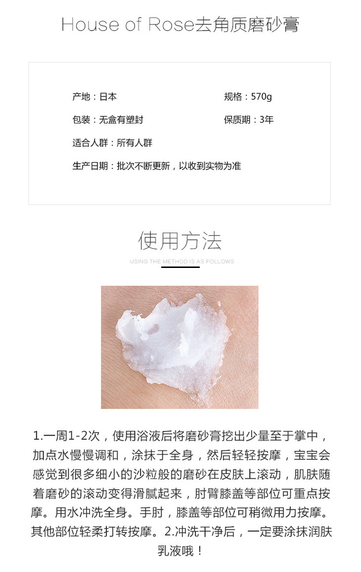 【门店直发】日本•House of Rose ohbaby磨砂膏570g