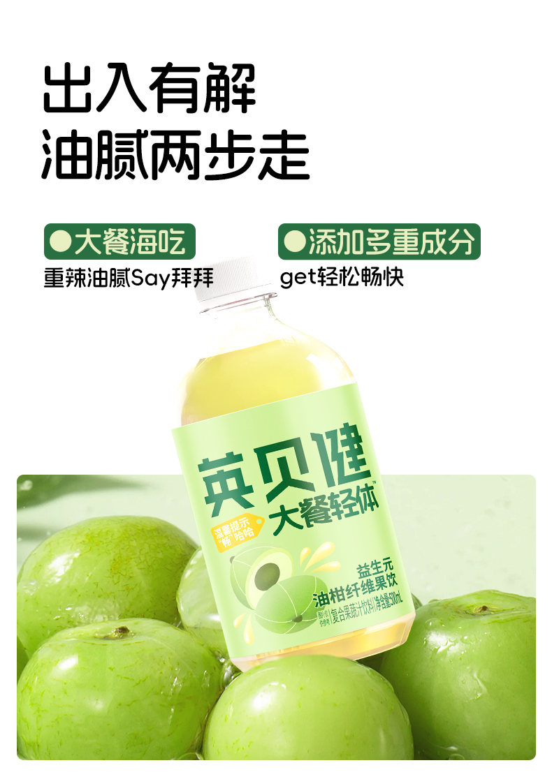 【一杯油柑 满口鲜爽劲】英贝健 霸气油柑汁500ml/瓶*4+100ml/袋*2试喝装