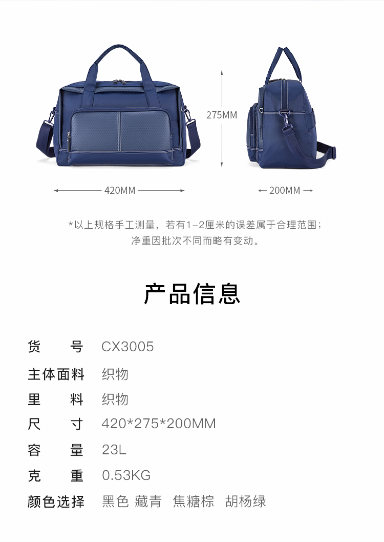 卡拉羊大容量多功能带拉杆插件可拎旅行包CX3005