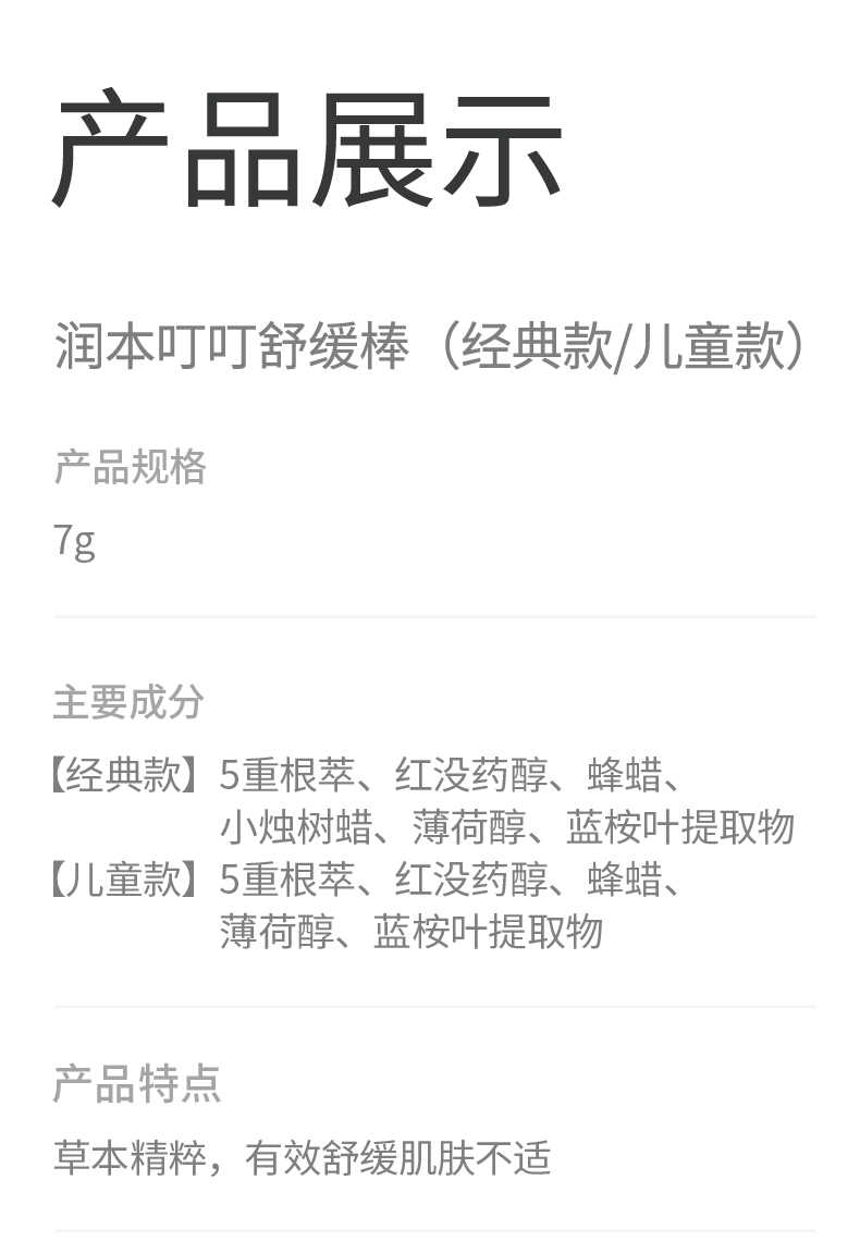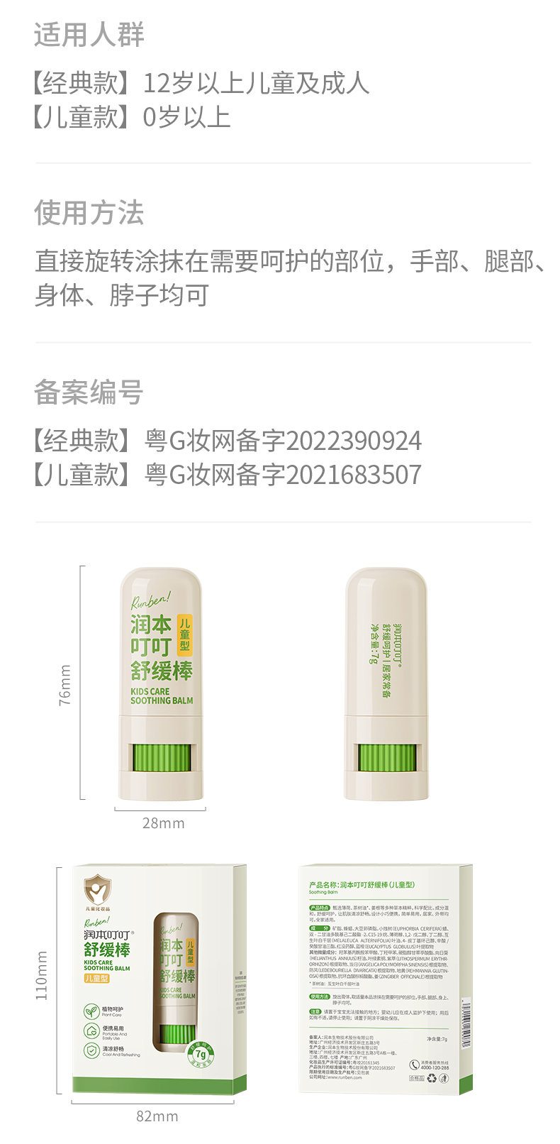 【品牌直发】润本舒缓棒7g/支 植物配方 温和舒缓 儿童款