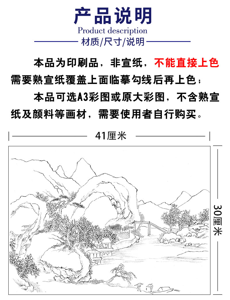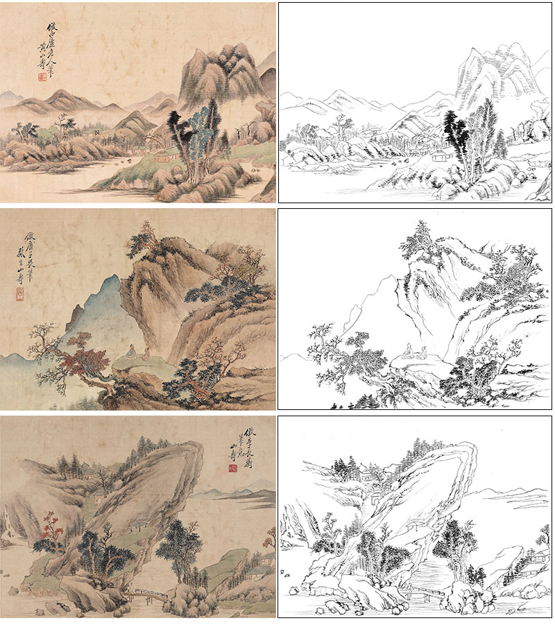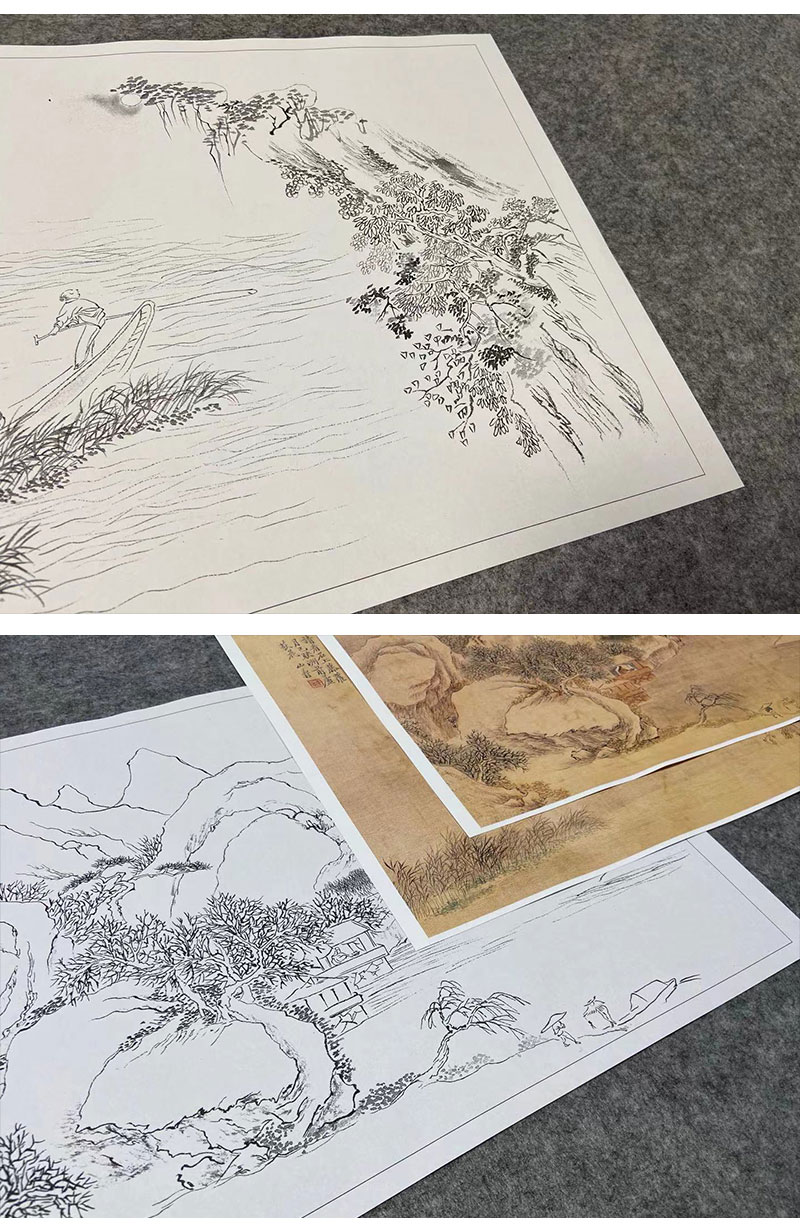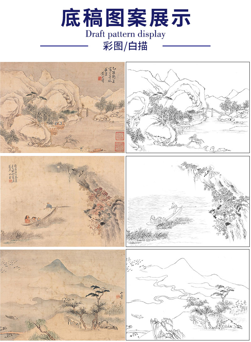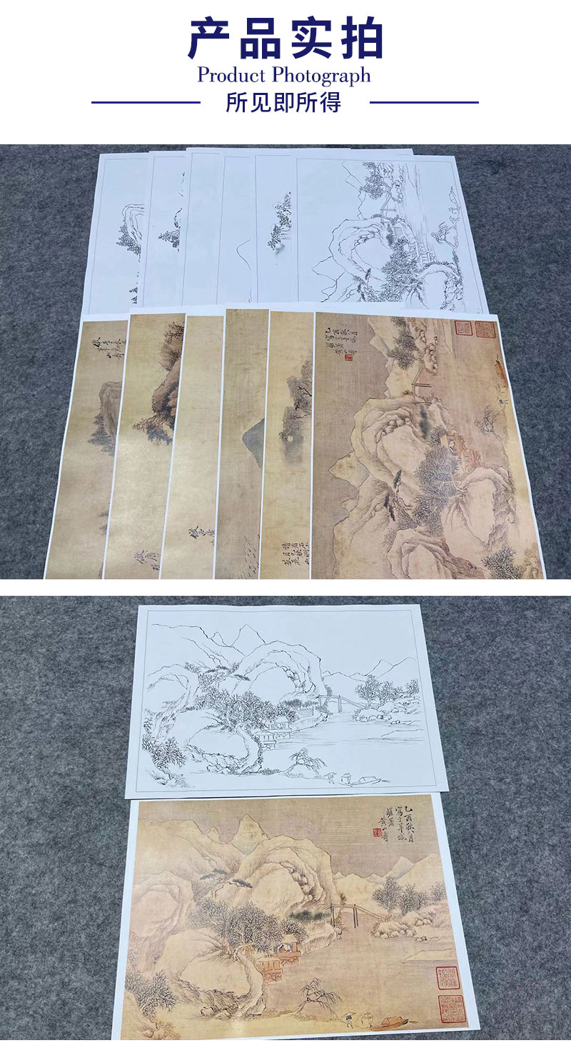 黄山寿工笔画白描底稿拟古山水册小品一套六幅册页尺寸30*41厘米MT10