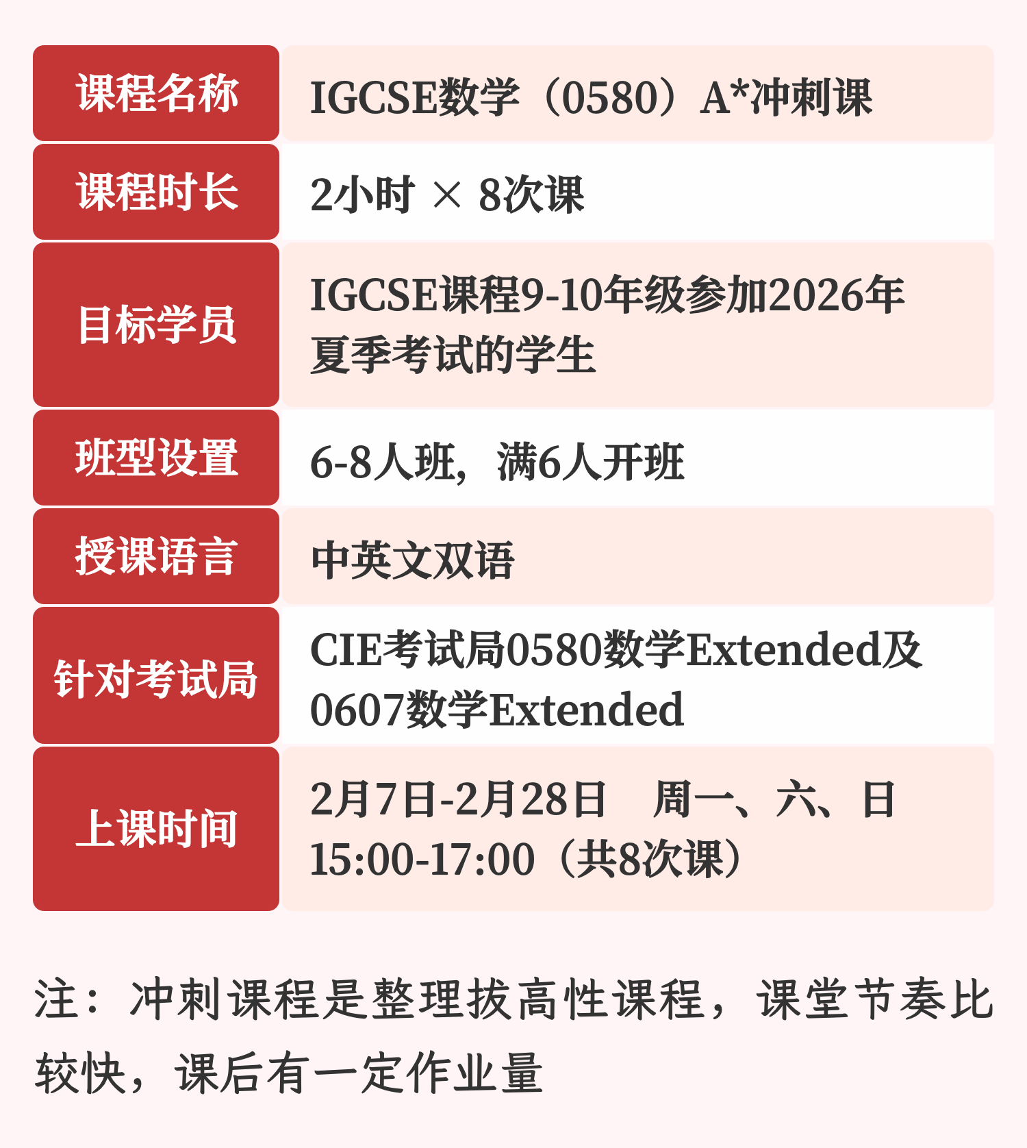 2026年 寒假班 IGCSE数学A*冲刺课(0580)- 获得A*可享600元奖学金