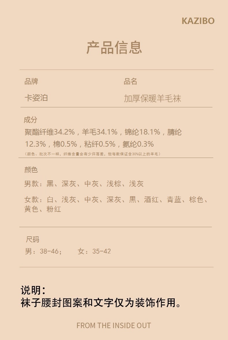 【卡姿泊巨厚羊毛袜】蓄热保暖羊毛袜,不扎肉不臭脚,34%含毛量,加绒超厚抗寒秋冬棉袜保暖冬天女厚袜子