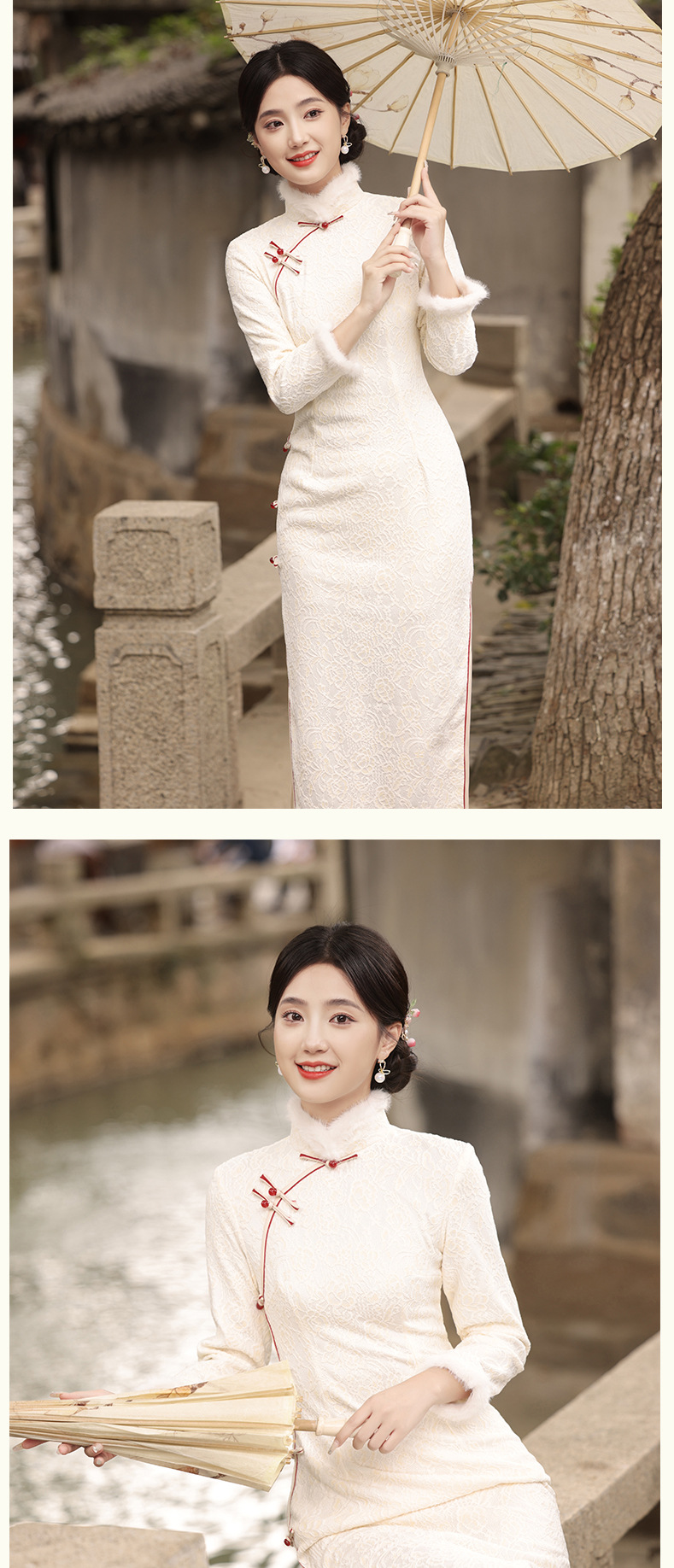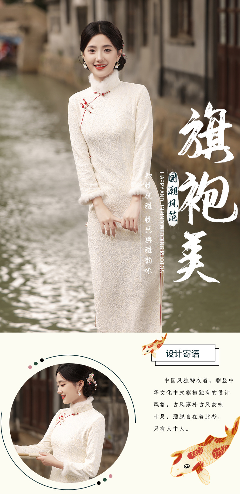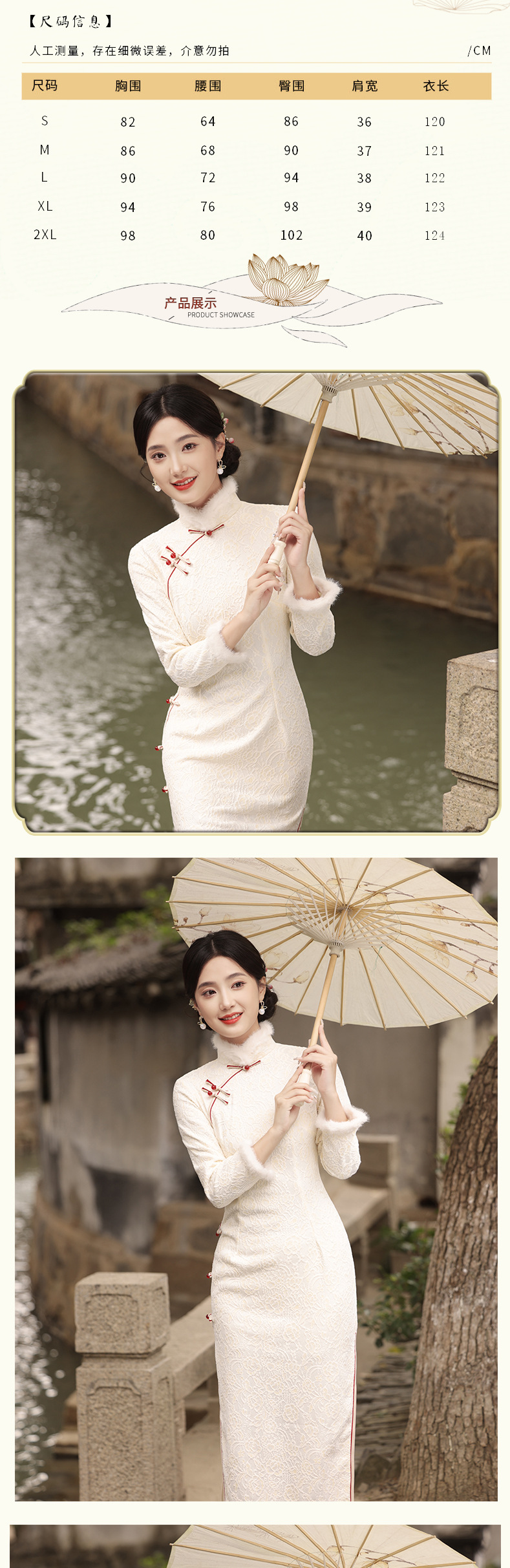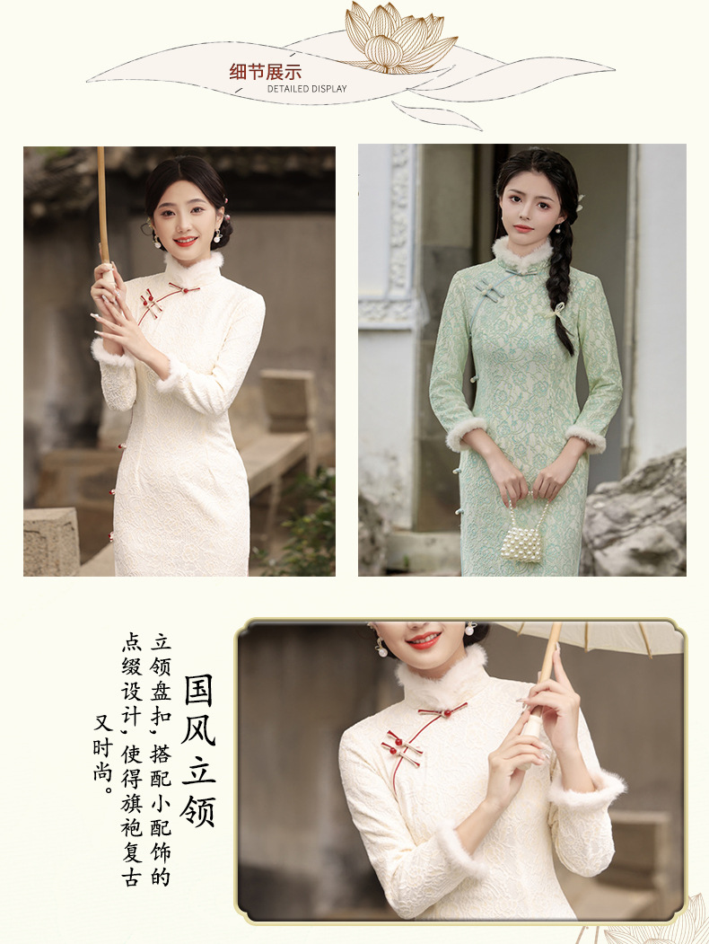 JN-198冬季新款 加毛加厚复合加绒侧八扣长款旗袍立领气质女连衣裙