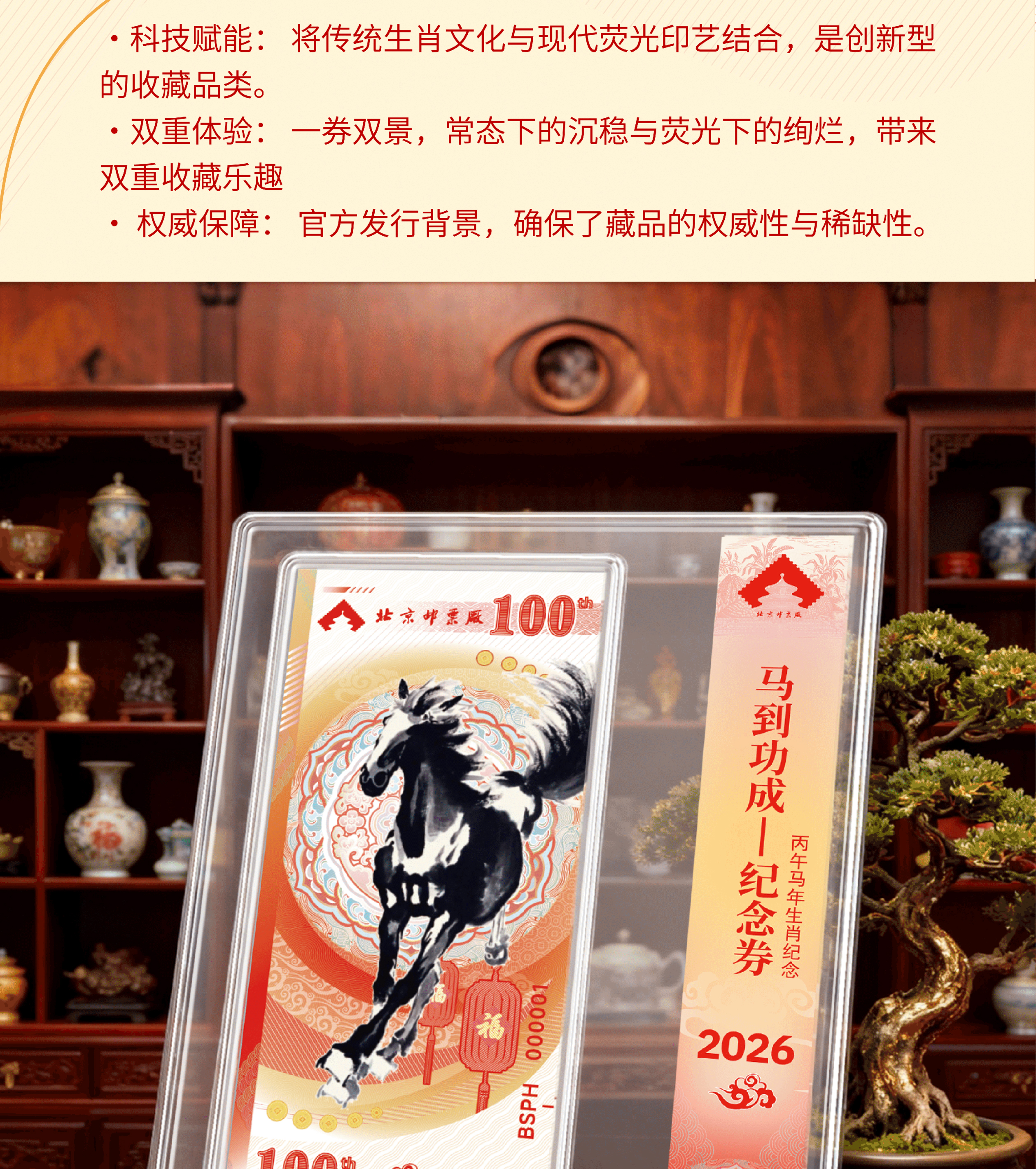 现货《马到成功》生肖纪念券,北京邮票厂联合徐悲鸿艺术馆,两大权威官方联袂出品!震撼发布!