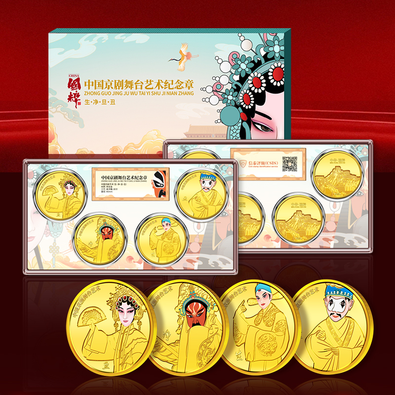中国京剧舞台艺术纪念章 生旦净丑4枚一套