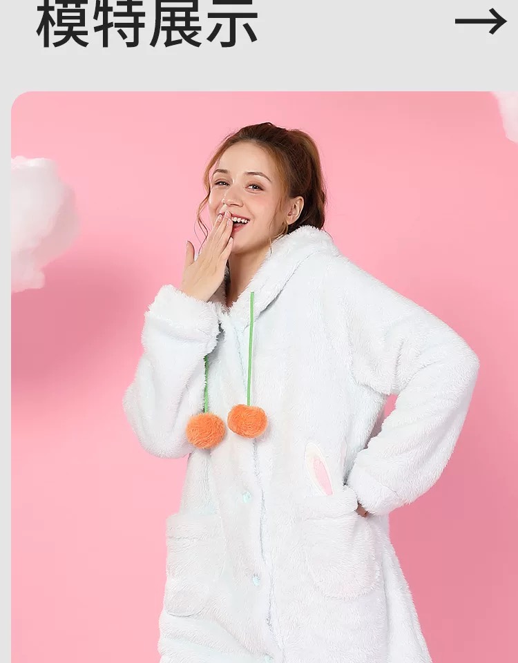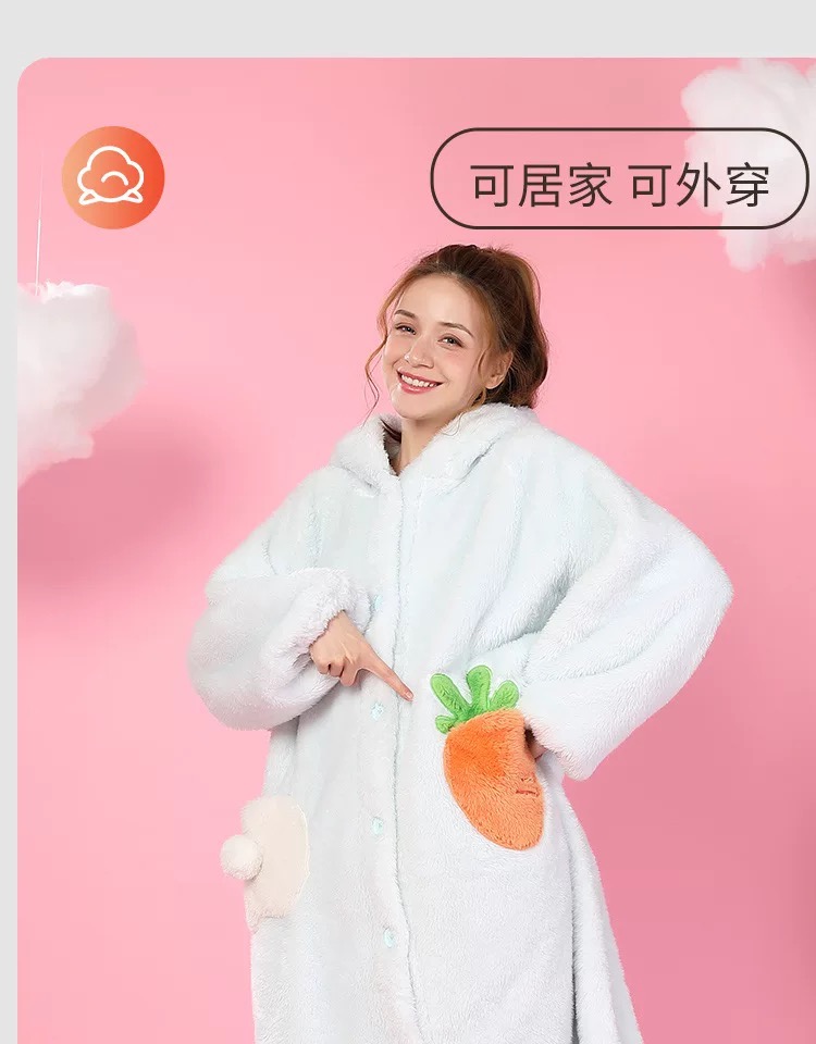 Tutu Anna秋冬家居服睡衣女萌耳朵系列前扣加厚款羊羔毛外套