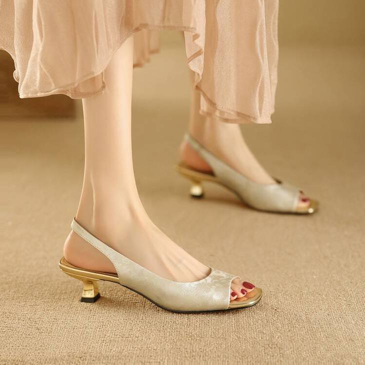 【预售5天】舒适4cm法式高级感鱼嘴凉鞋女细跟2024夏新中式国风凉鞋露趾LG&218-708