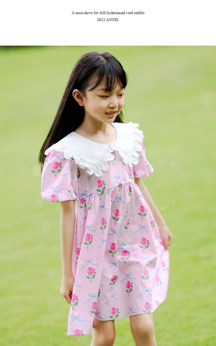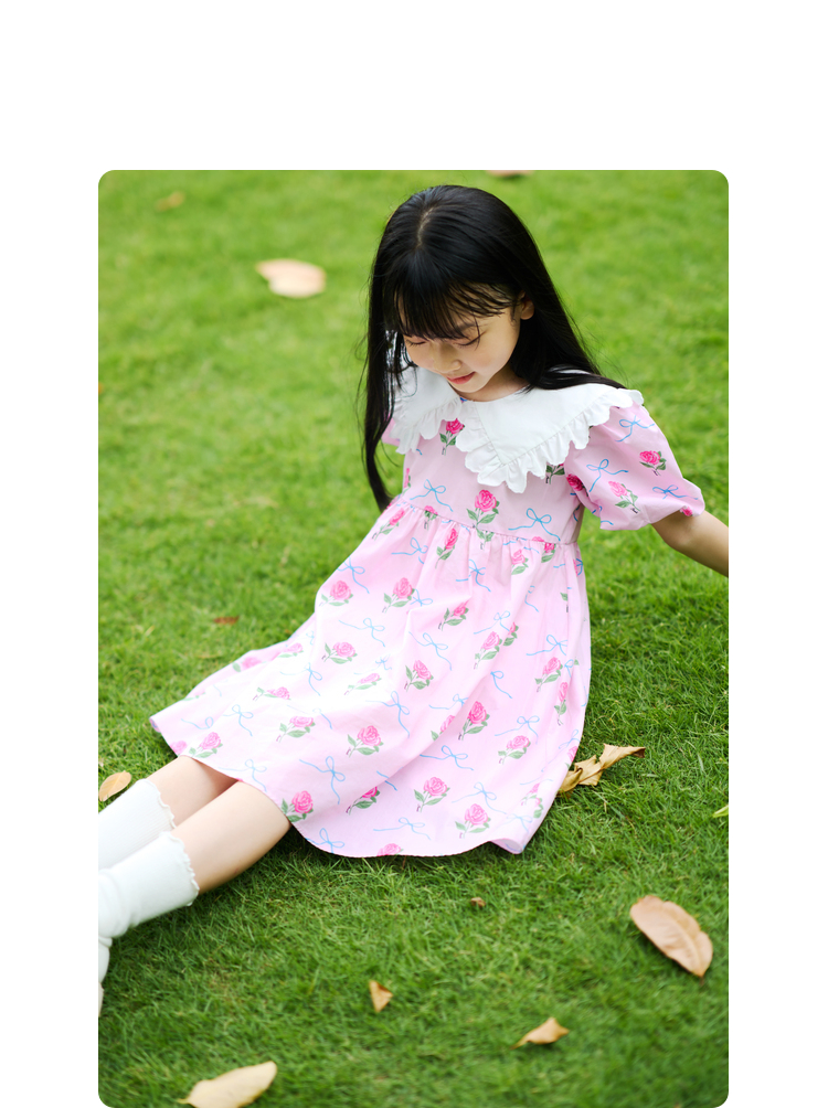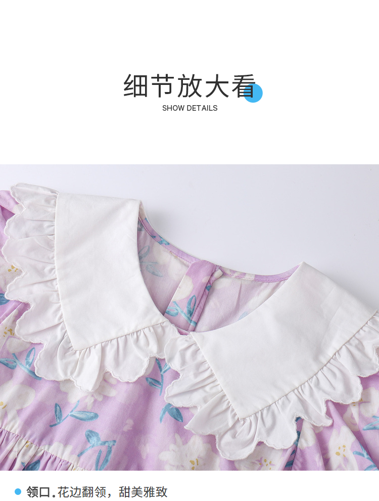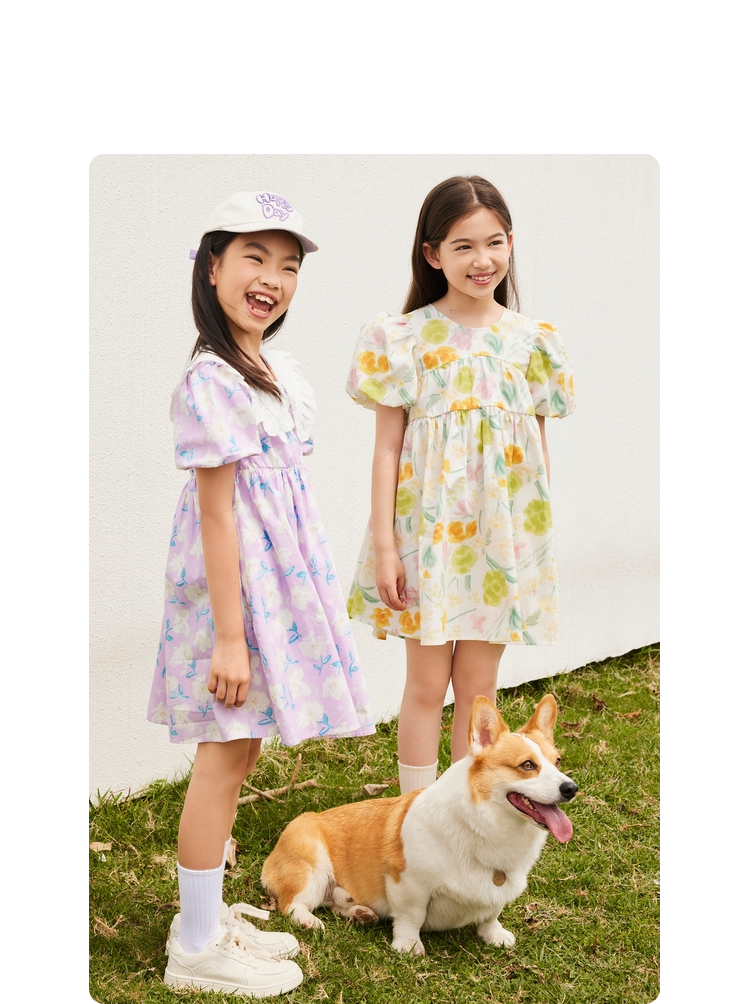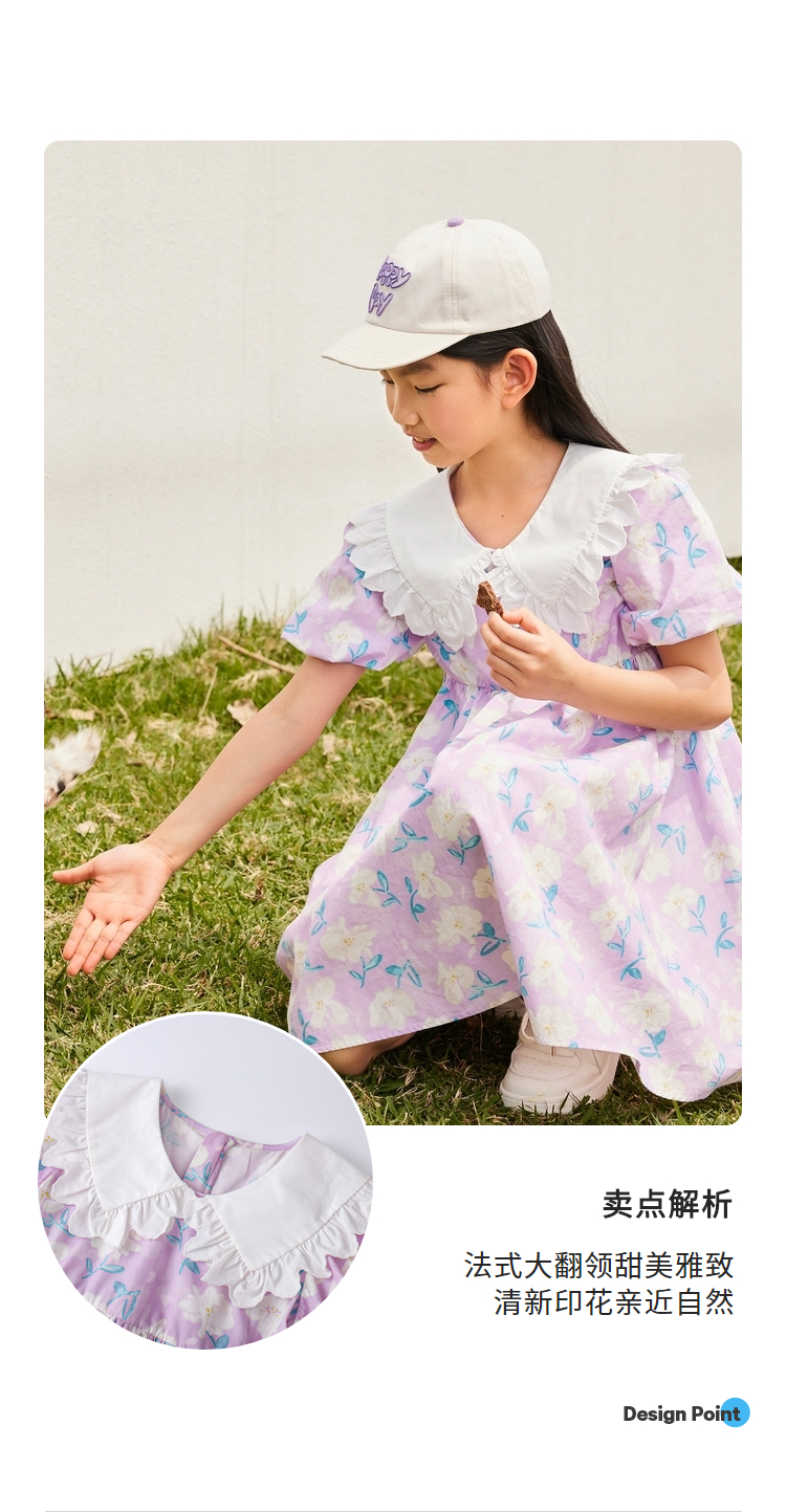 女童连衣裙纯棉夏新款泡泡袖甜美碎花收腰A字裙子安奈儿童装EG323177