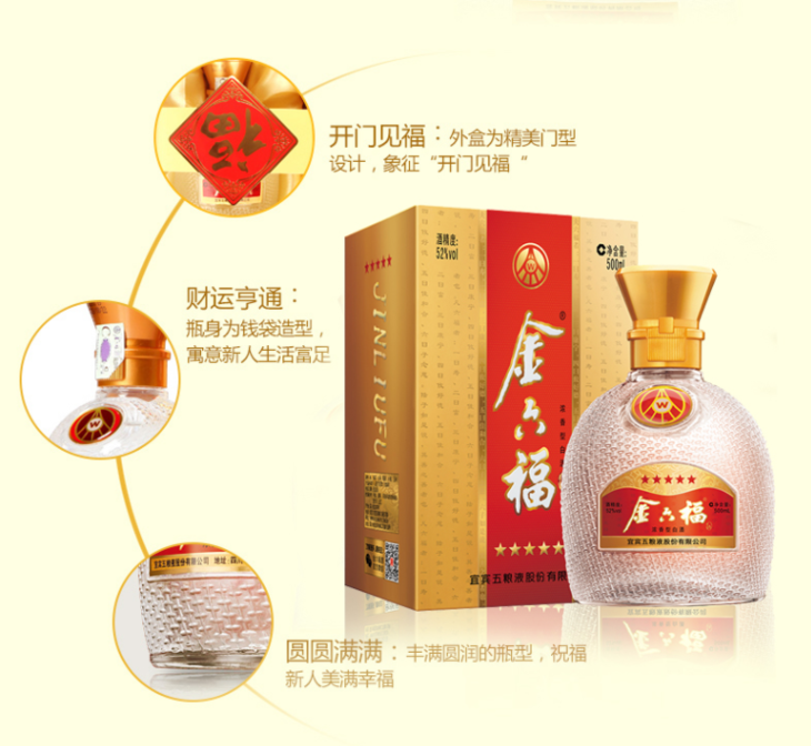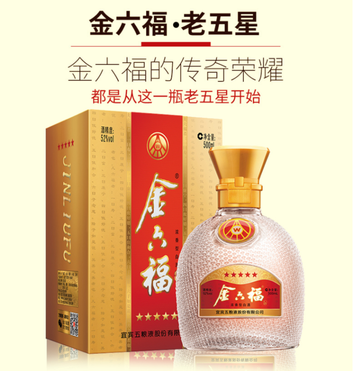 【推荐】五粮液股份公司 金六福 五星 52度白酒 500ml单瓶装