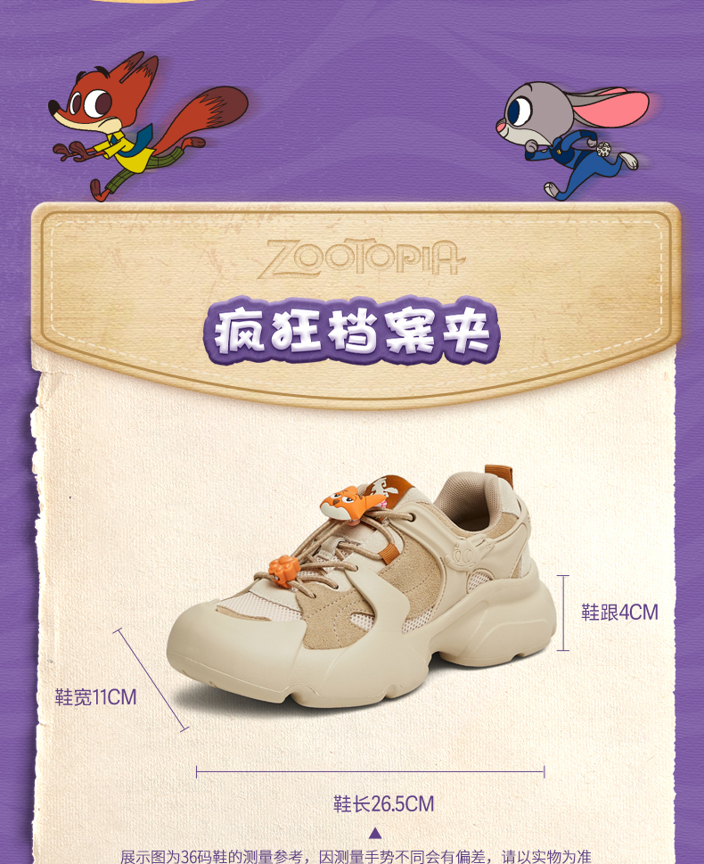 TEENMIX天美意 疯狂动物城联名 丑萌休闲鞋大头鞋女厚底运动鞋子2025春新款