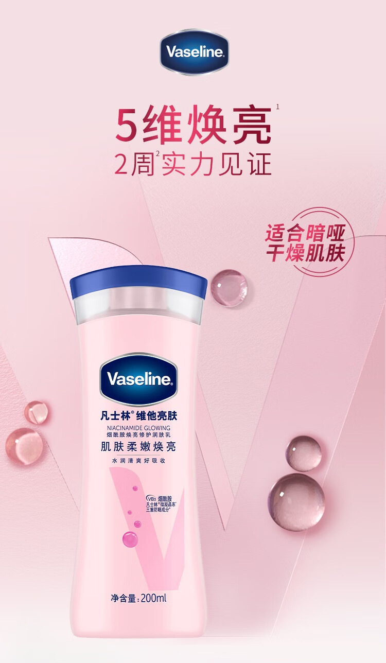 【品牌直发】凡士林400ml 维他亮肤烟酰胺焕亮修护身体乳保湿滋润秋冬补水清爽