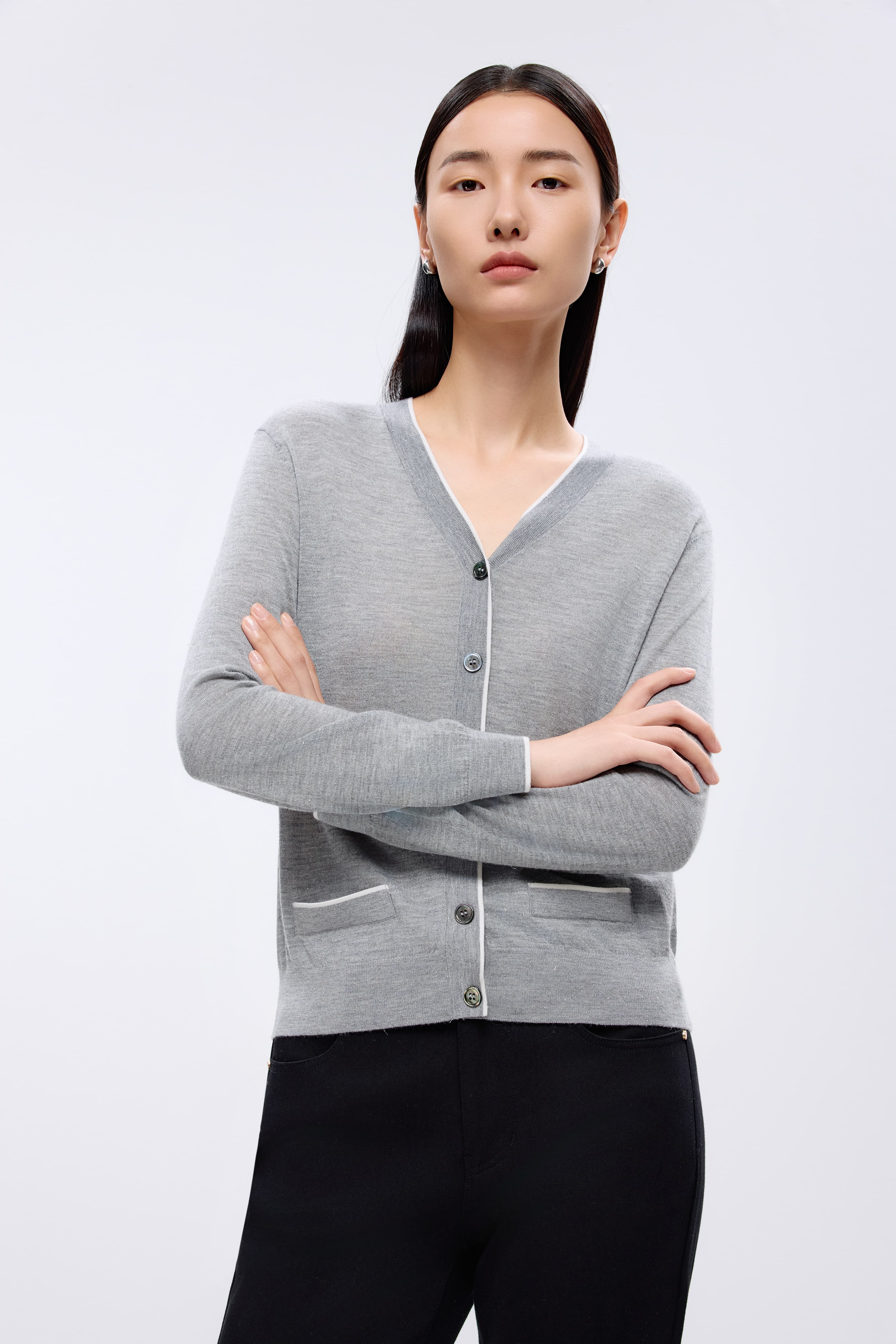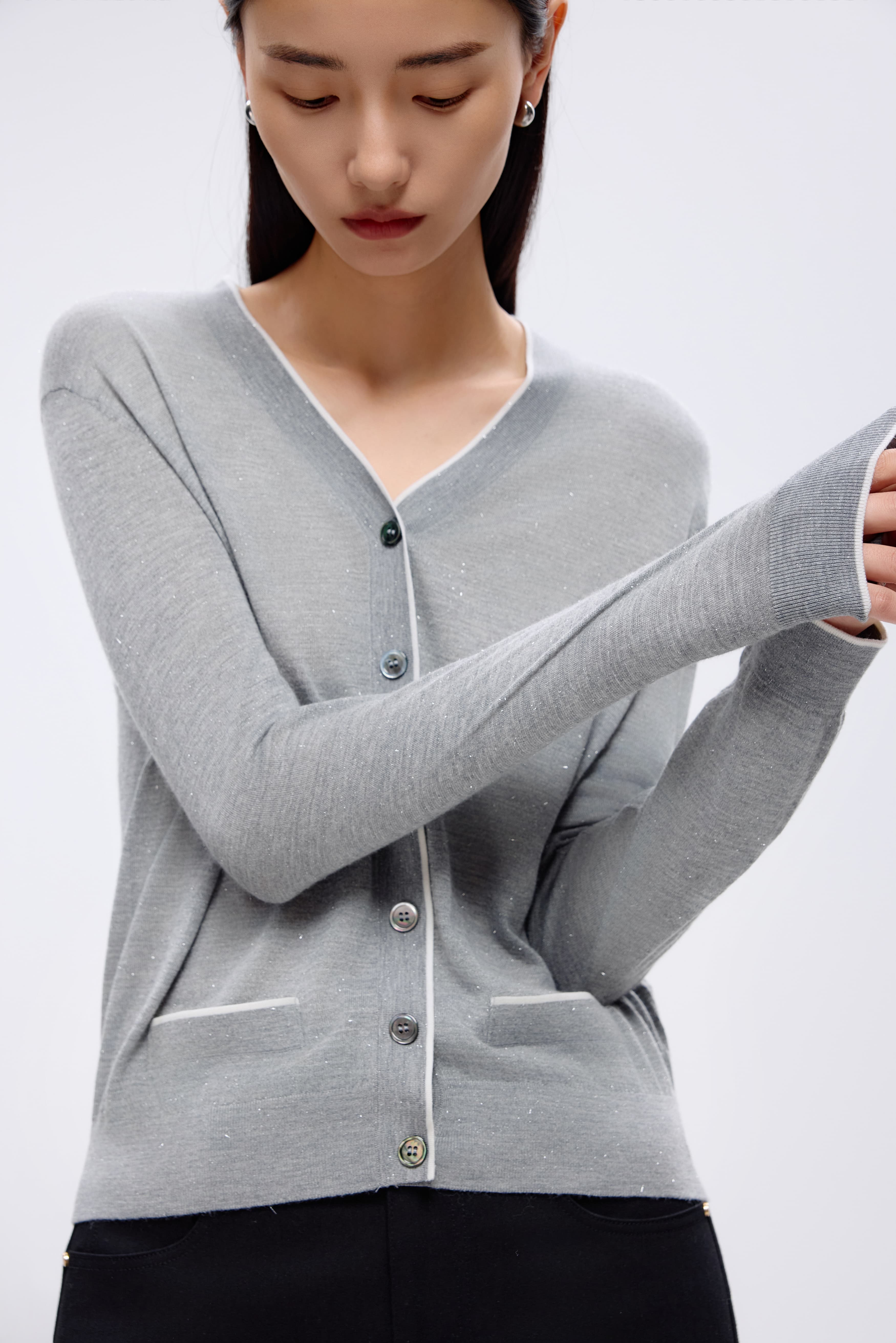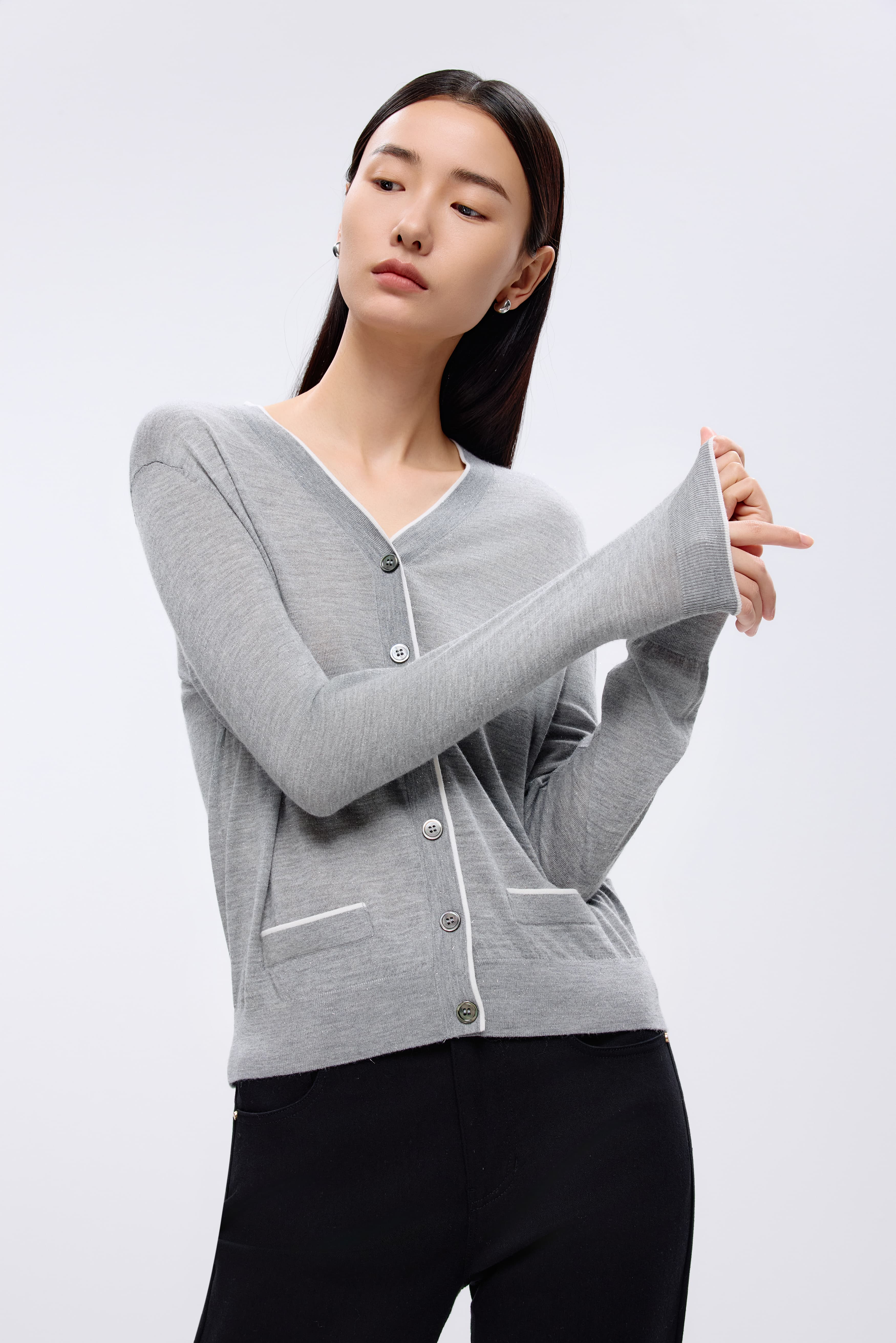 朗姿 针织开衫银色LRJK03KCD206S01