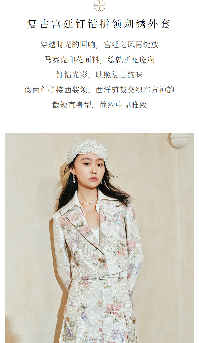 【商场同款-宫廷飞鸽】MAXRIENY复古宫廷钉钻拼领刺绣外套24春款(货号:MC85JA004)
