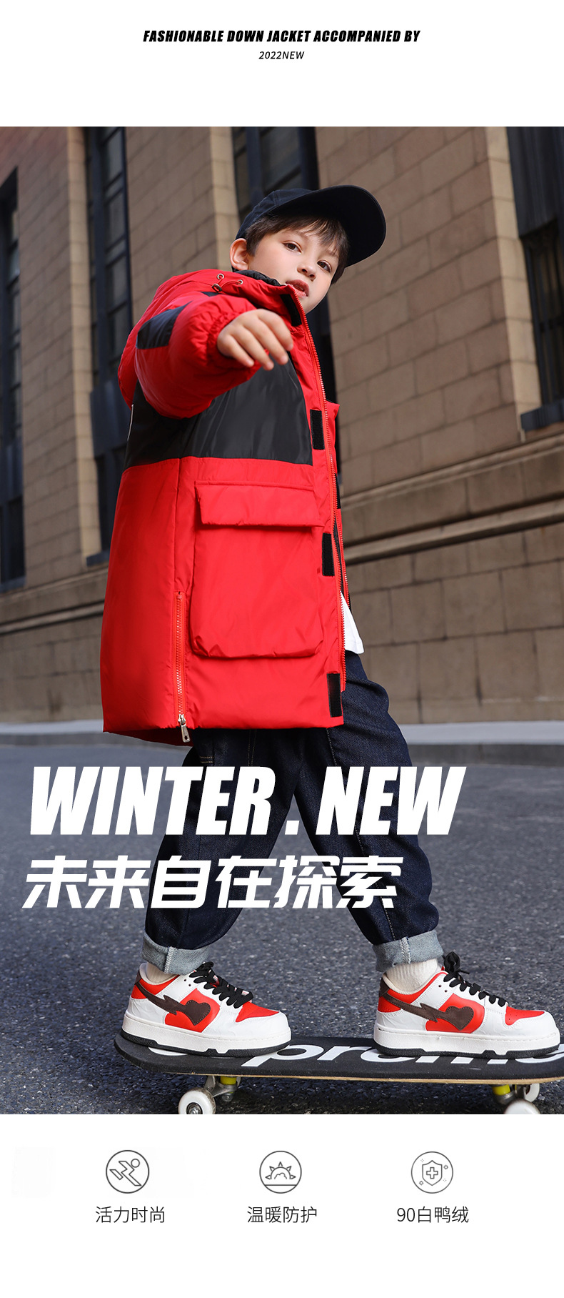 XBB-2216新款儿童羽绒服男童中长款加厚中大童男孩洋气冬装羽绒外套