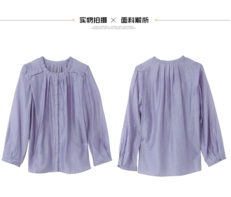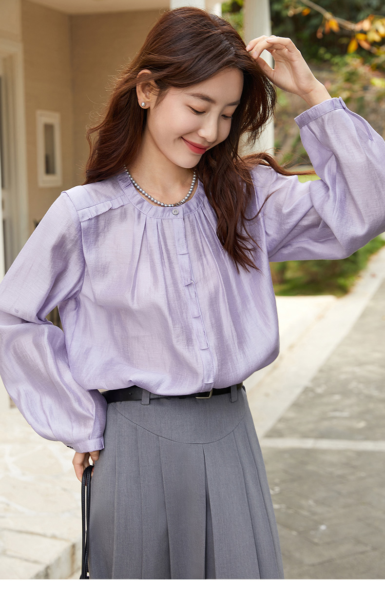 温柔气质担当!浅紫色圆领褶皱衬衫 通勤日常都绝