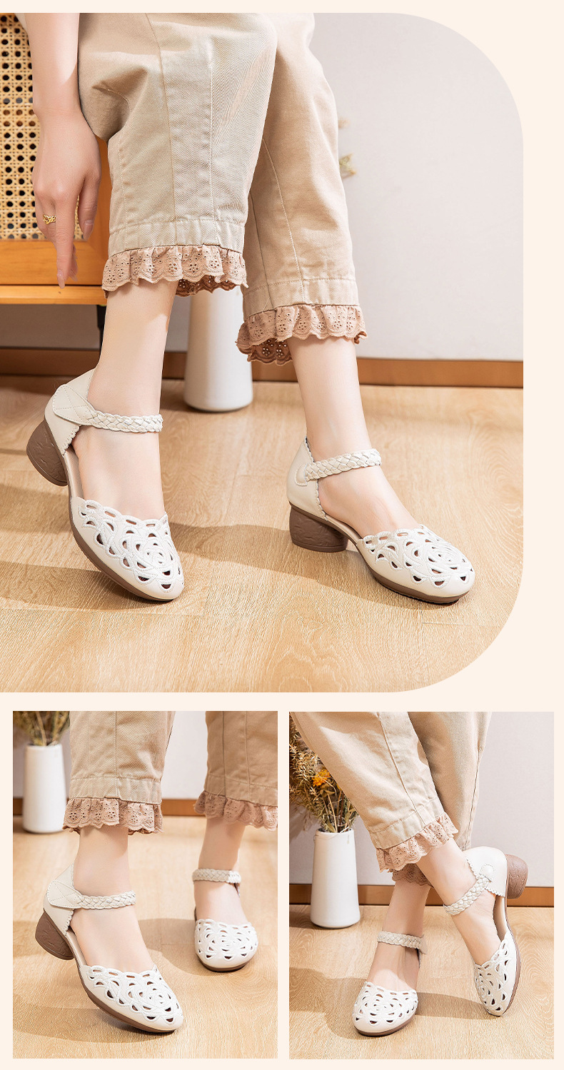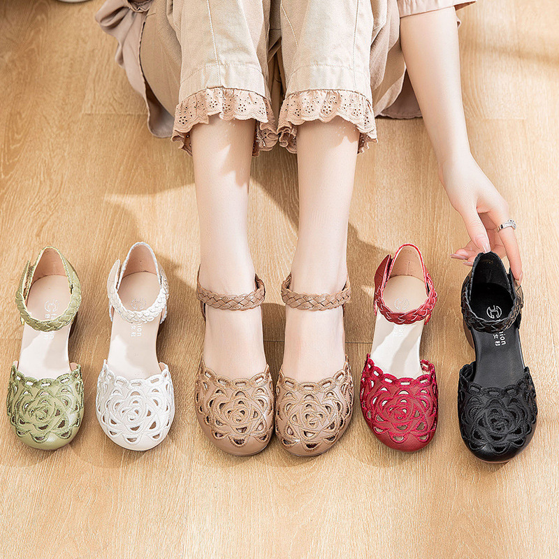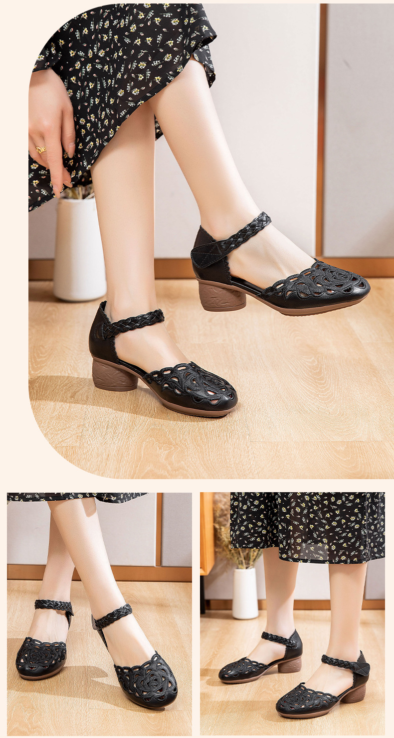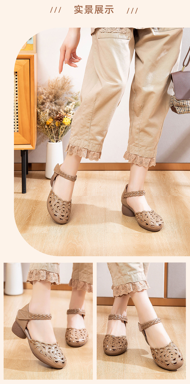 夏新款中老年真皮妈妈鞋凉鞋镂空雕WZ7732