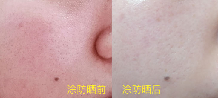 也完全不卡粉。我用的是特别轻薄的起点,没有什么遮瑕功效,隐形毛孔纯粹是这只防晒的功效。