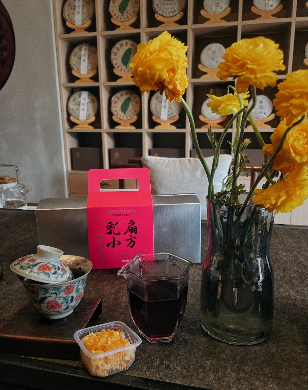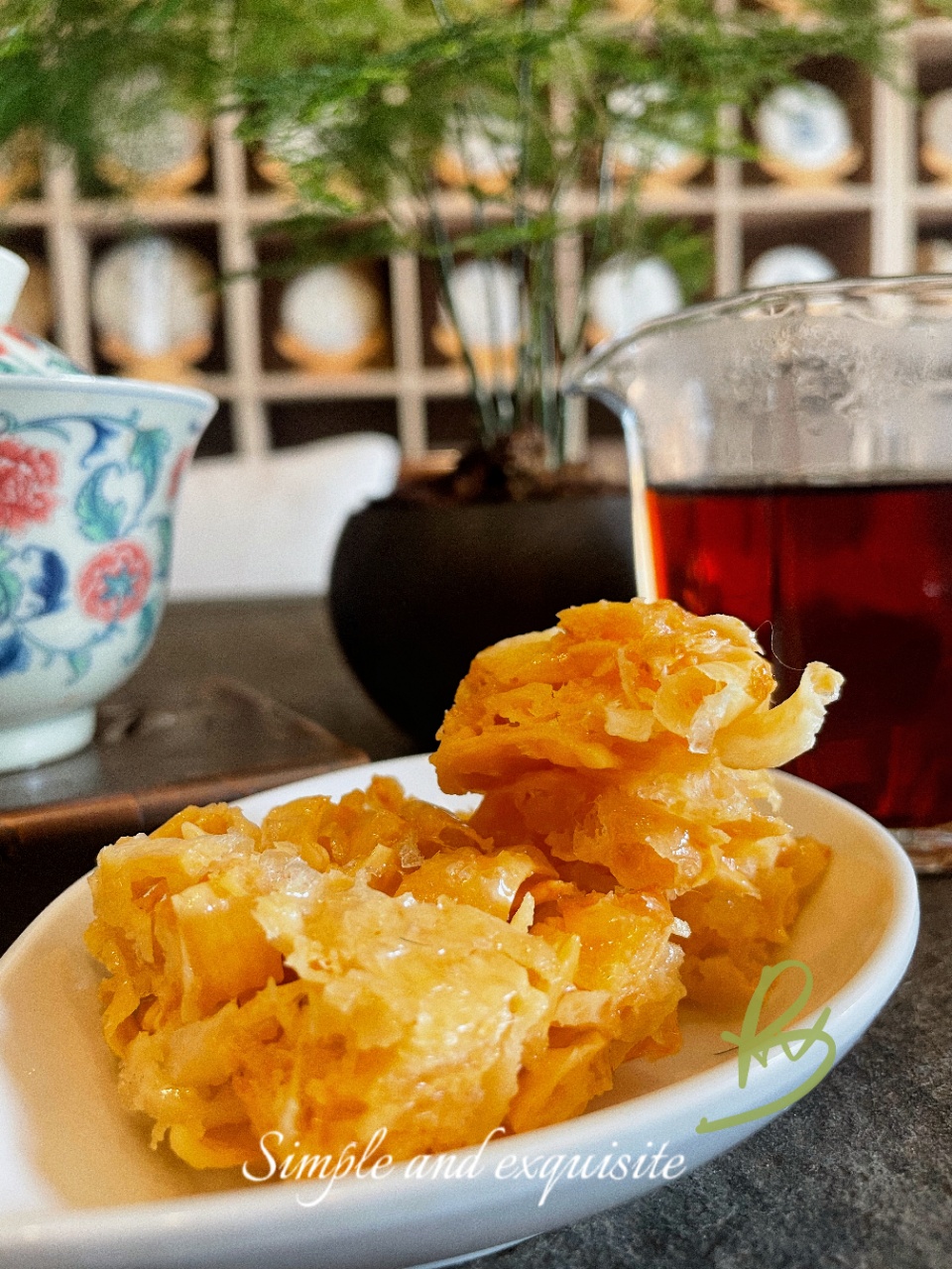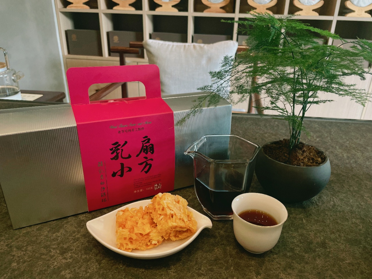 云南老字号纯手工的乳扇萨其马,配一杯清茶。