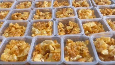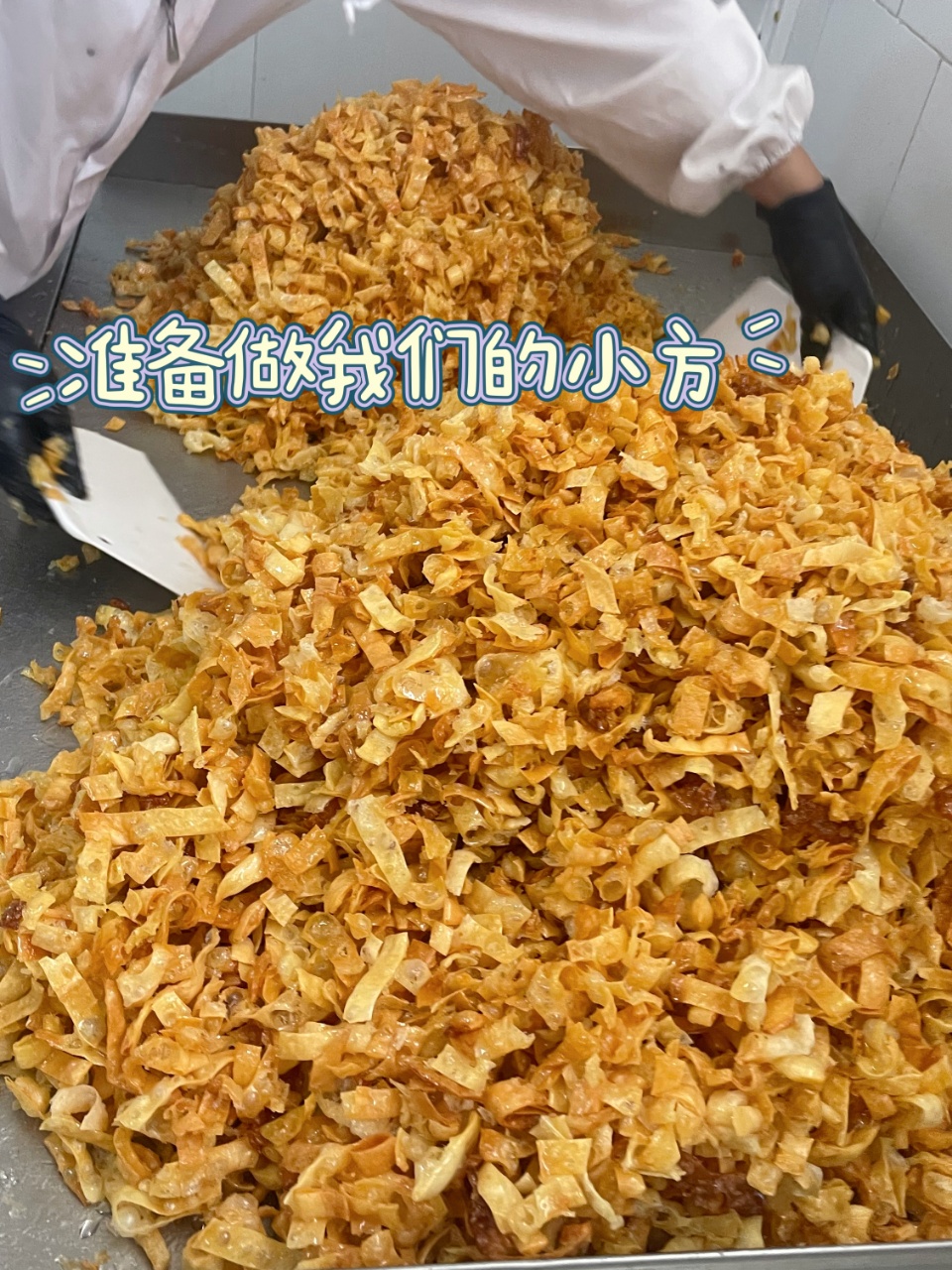 我们选好乳扇,因为它决定了萨其马的奶香够不够浓郁。