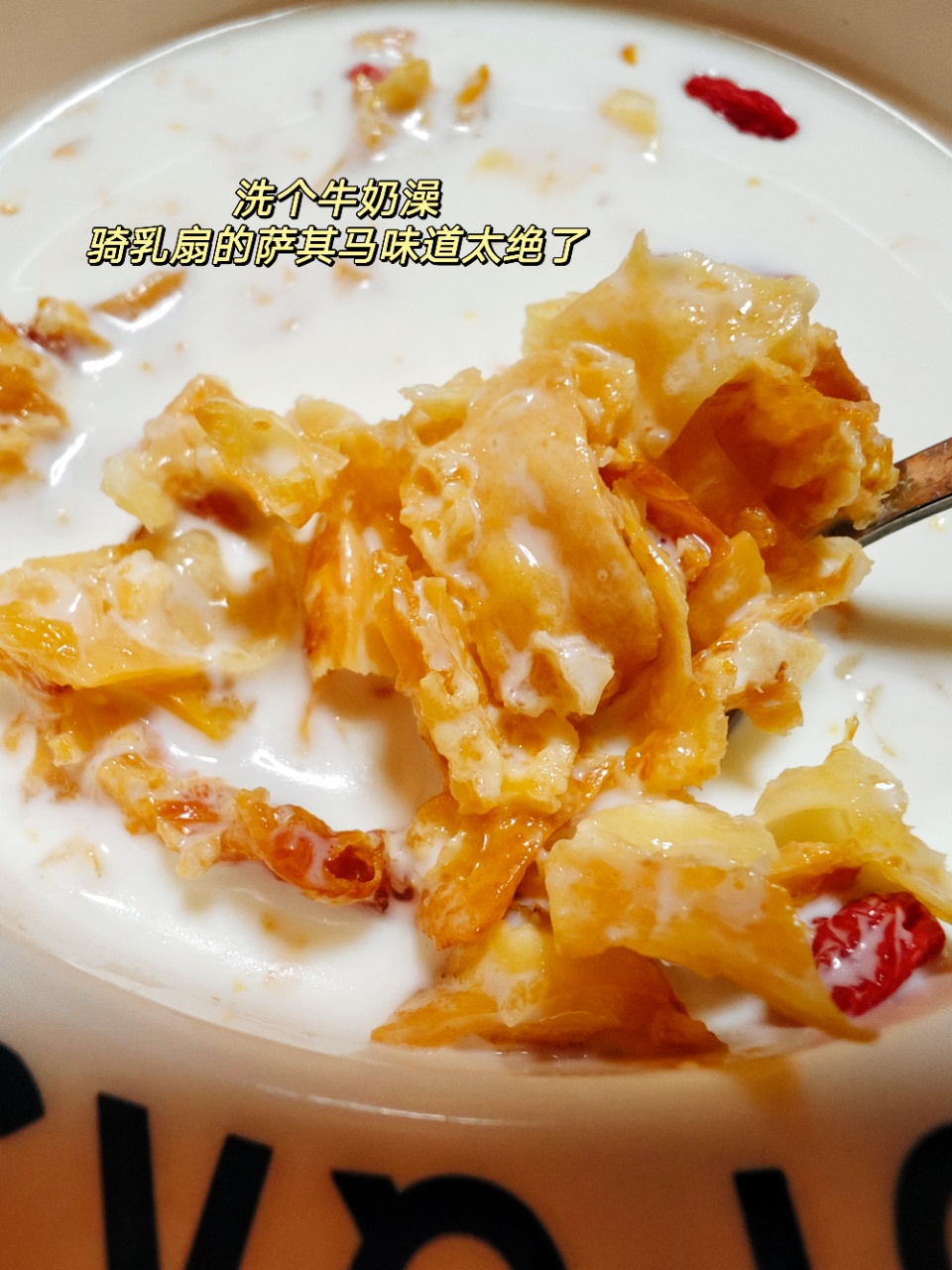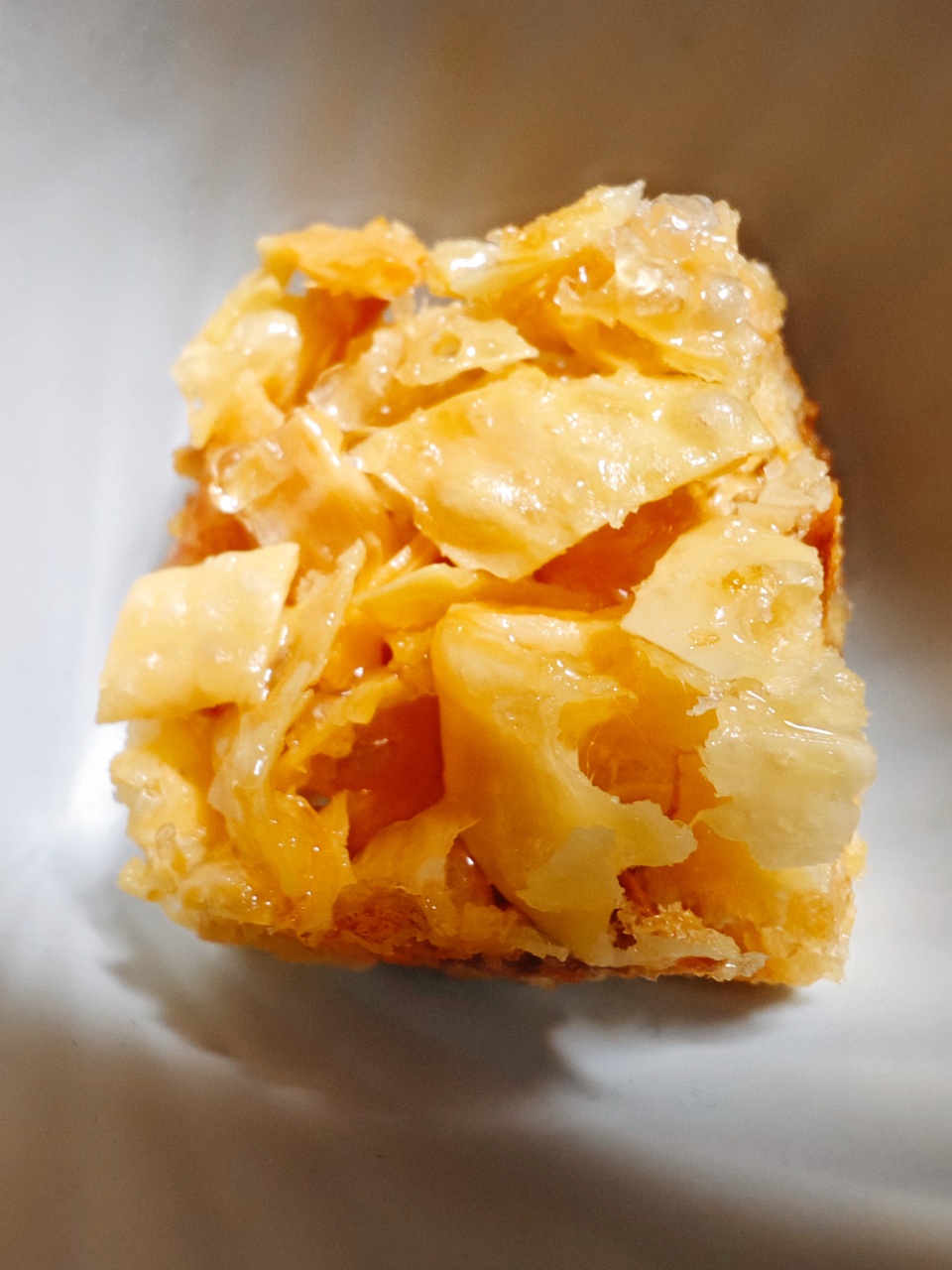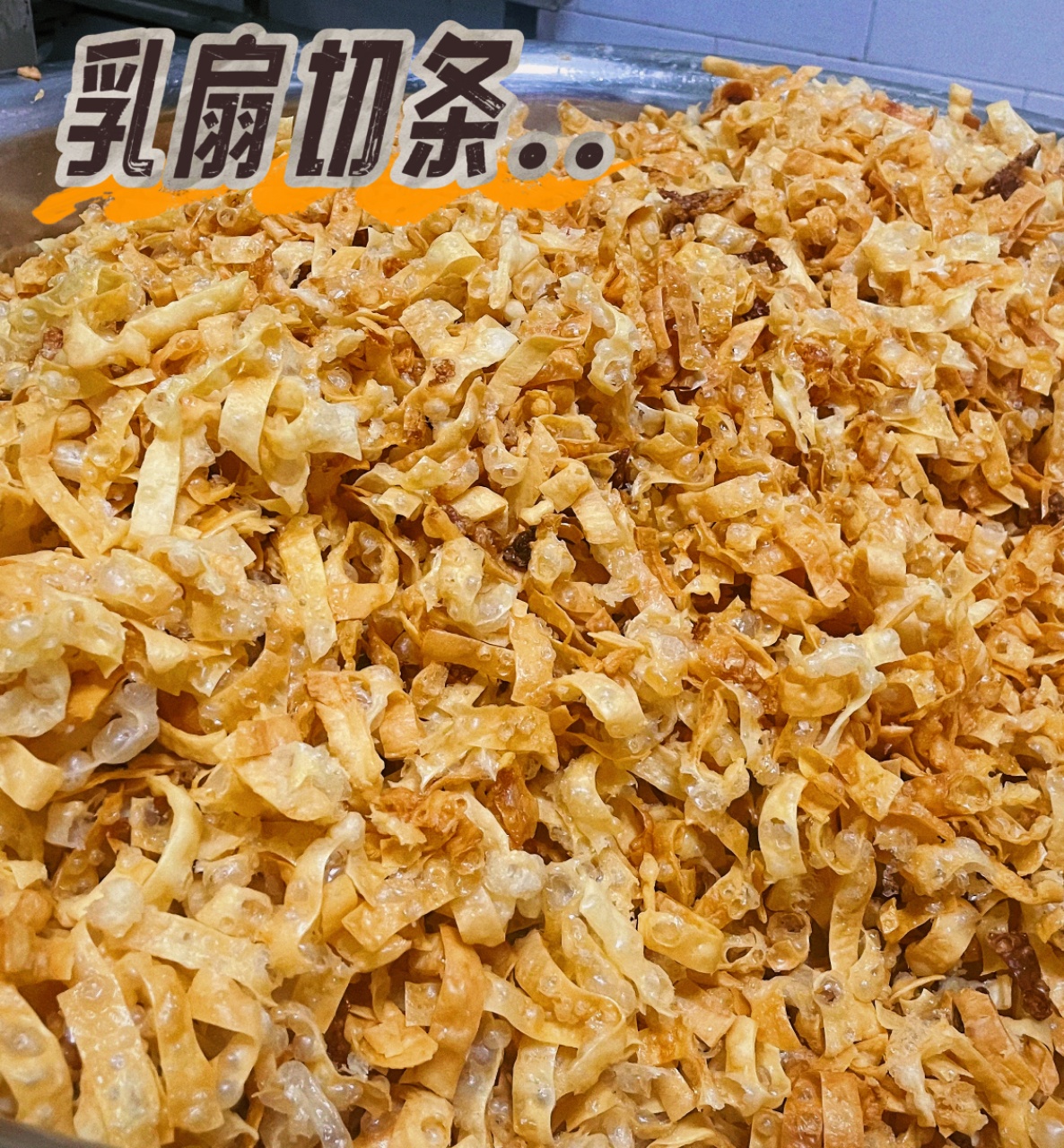 牛奶要炸,炸完以后,变身我们的乳扇萨其马。一层浓浓的麦芽糖浆,香甜不腻。