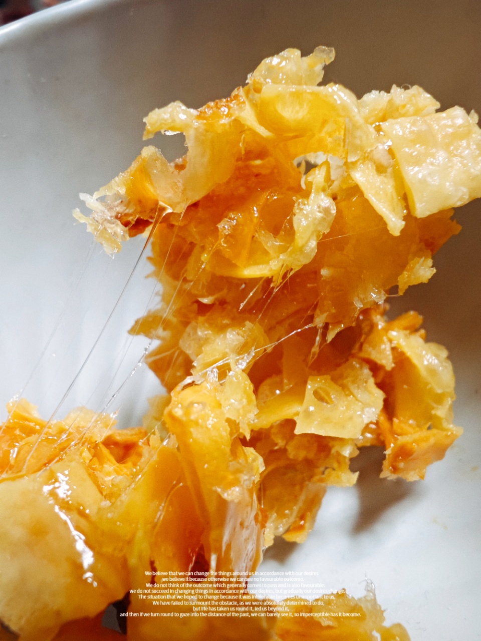 制作房里,味道也从浓浓的奶香味变成了混合的蜜香。鼻子正在享受一场盛宴,而味蕾也在不自觉的分泌唾液,忍不住的想赶快掰一块放到嘴里。