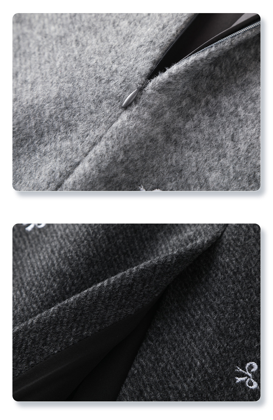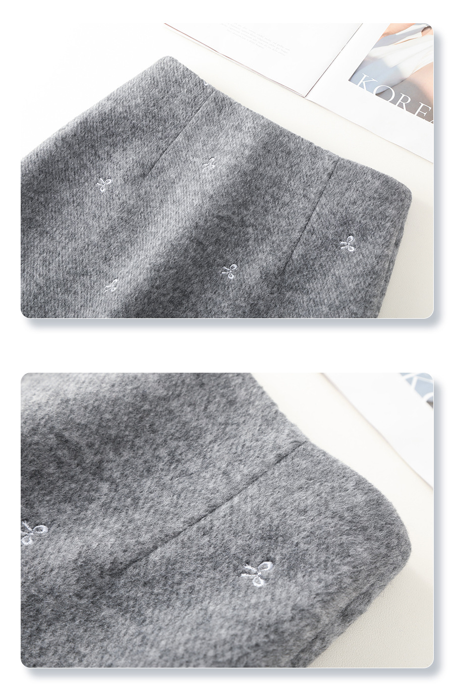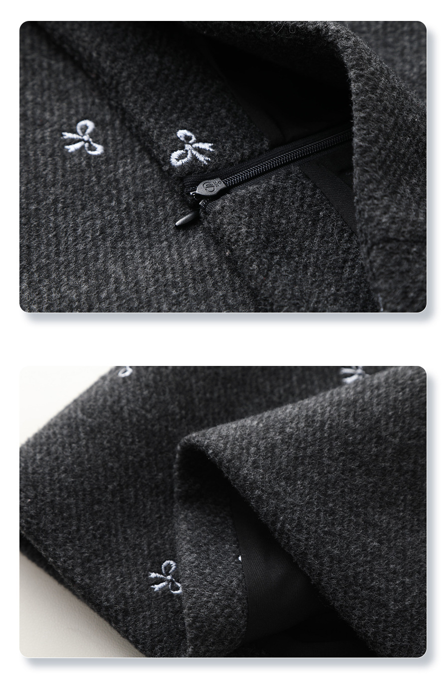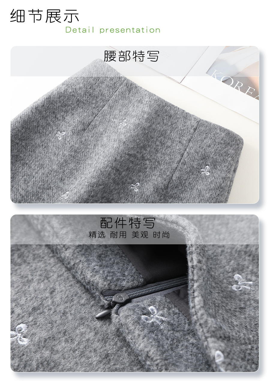 丁摩 黑色刺绣毛呢直筒半身裙女秋季新款高腰显瘦中长款开叉一步裙5ZF-28706