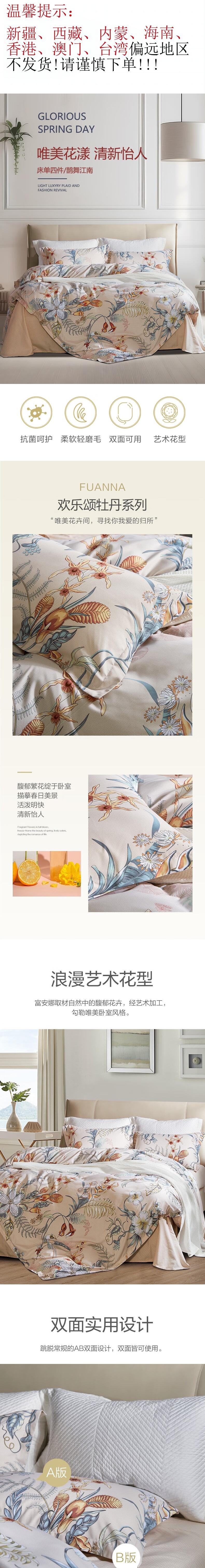 富安娜 床单四件套/鹊舞江南/标准/黄203*229cm 6916517184536