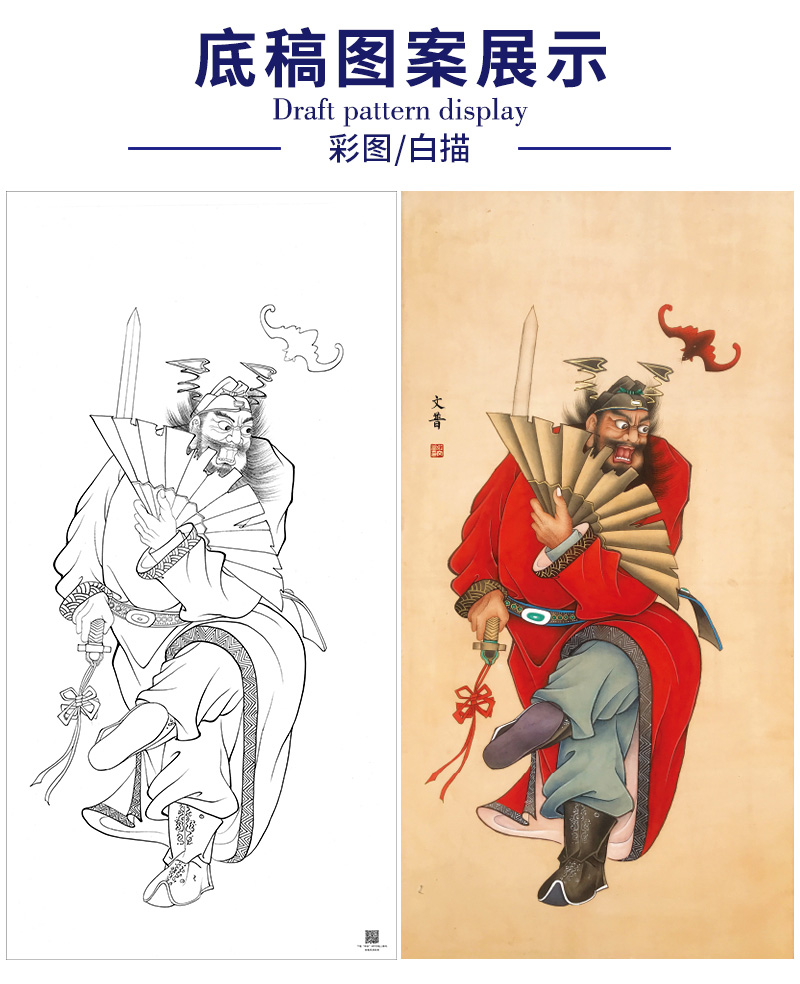 【大彩图】於文普工笔画白描底稿《钟馗》临摹勾线人物线稿WP33