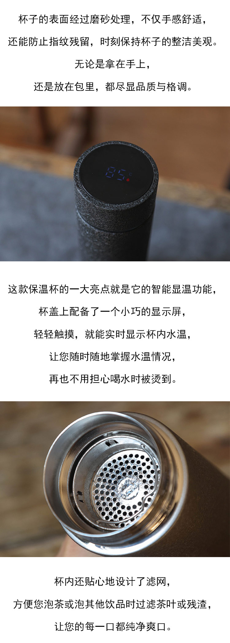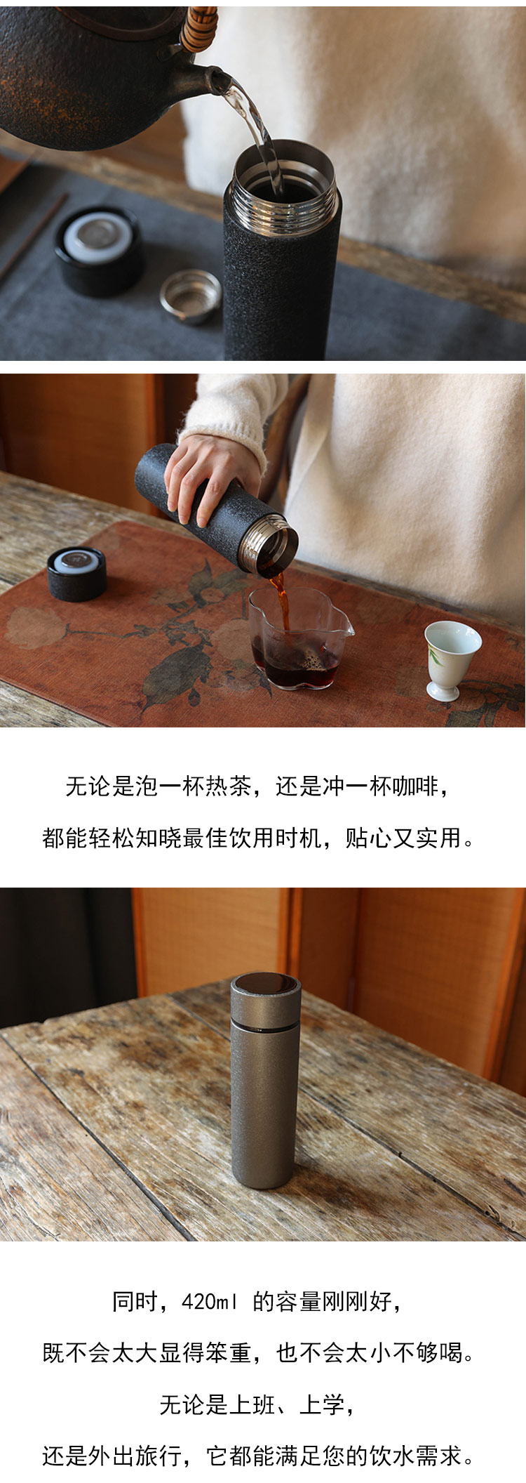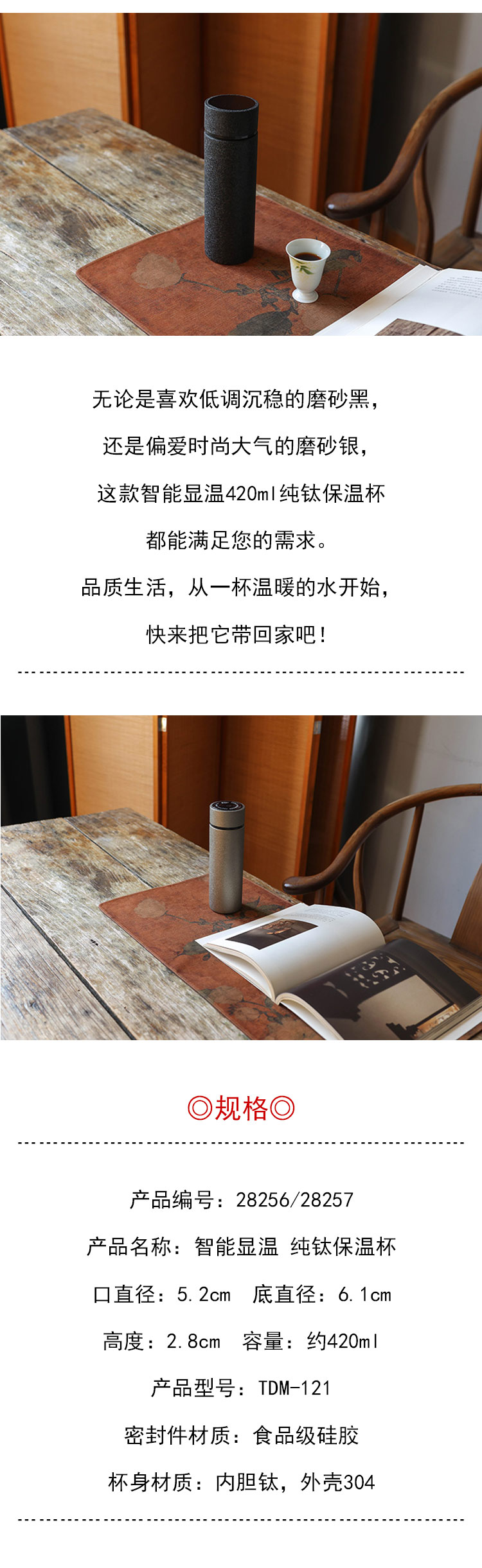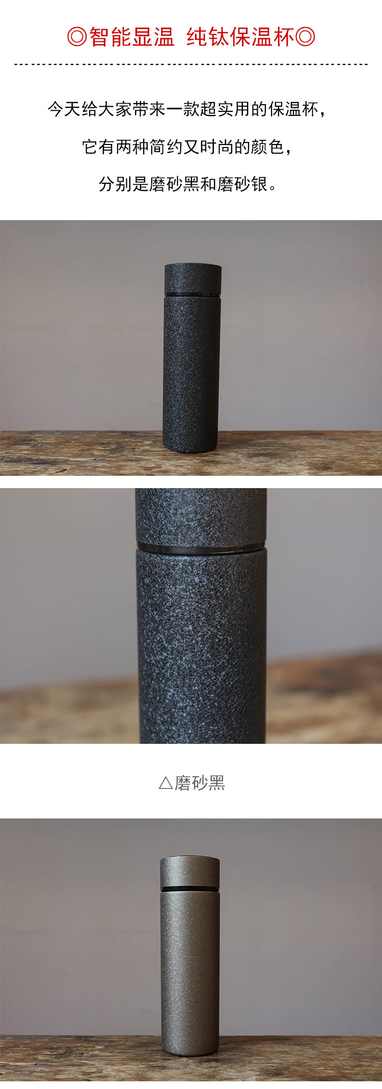 茶香记 智能显温420ml纯钛保温杯磨砂黑磨砂银纯钛材质打造轻巧便携保温好温显