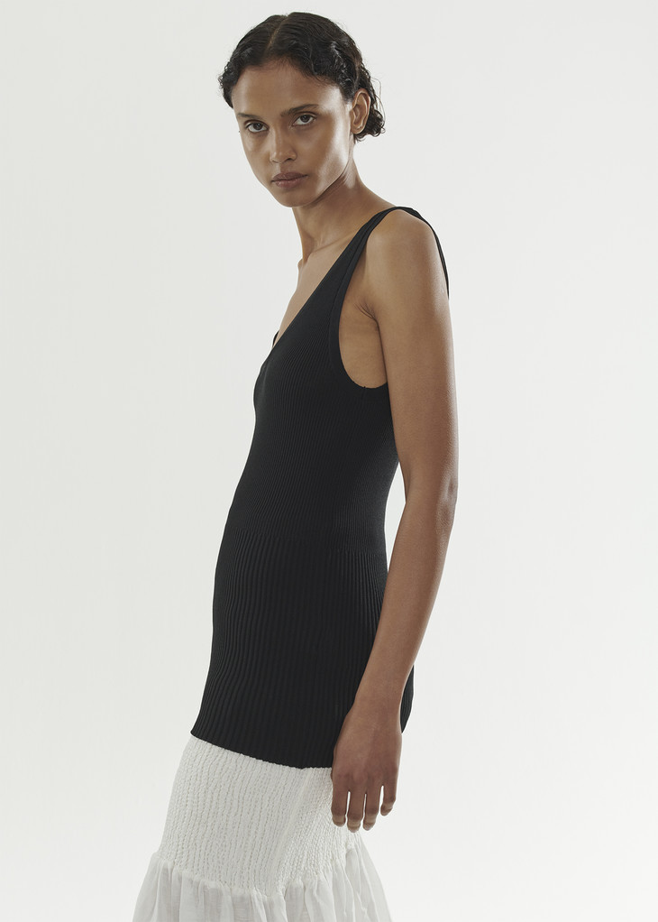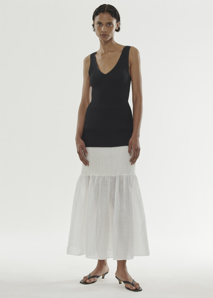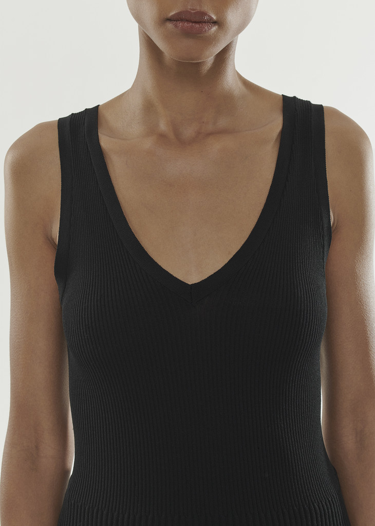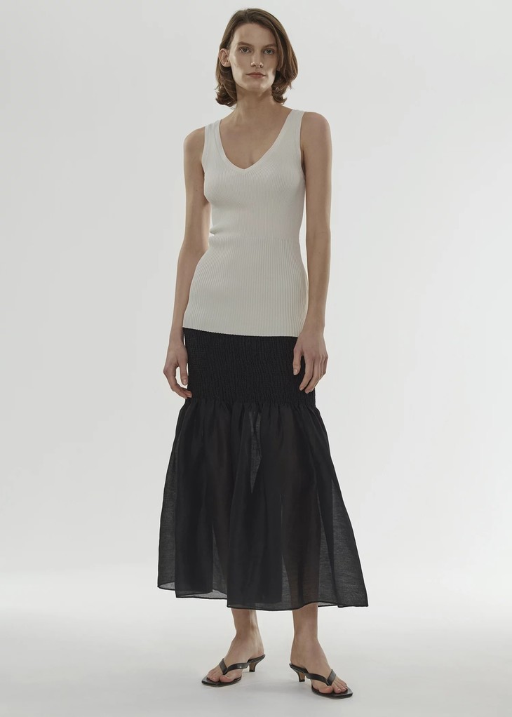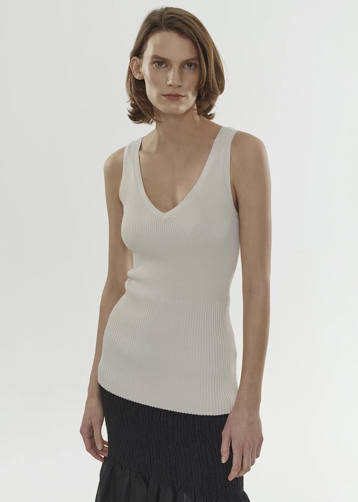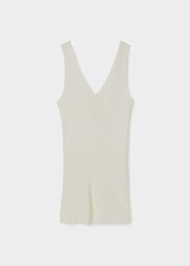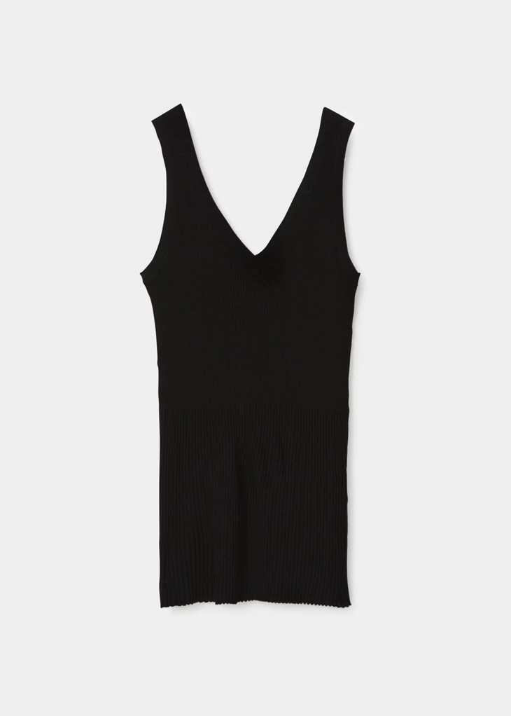 前后V领线条的深度恰到好处,勾勒出女性的柔美身线;细密的螺旋织法更从视觉上修饰了上身比例。人造丝面料富有弹性又易于护理,现有米色、黑色可选。