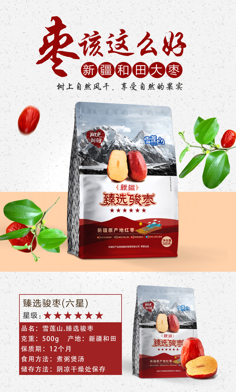 雪莲山·新疆臻选骏枣500g(一级枣) 臻选大果 果肉肥厚