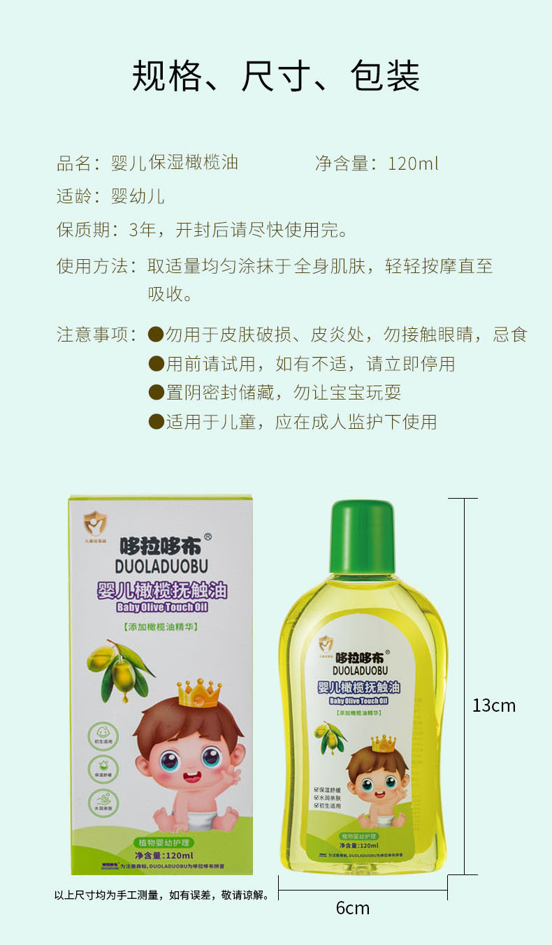 【婴儿保湿橄榄油,初生抚爱,自然奢宠】婴儿营养保湿橄榄油 宝宝补水植物 全身润肤油120ML-QQ