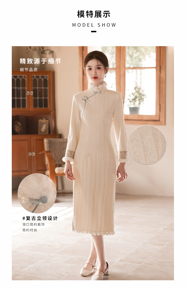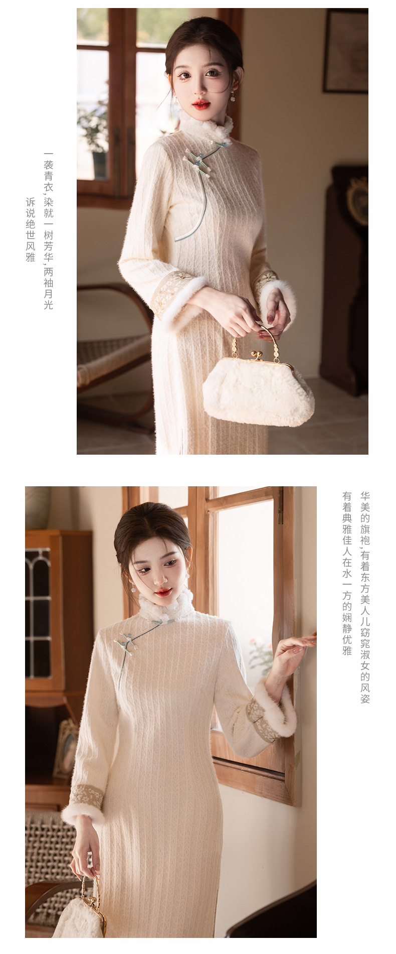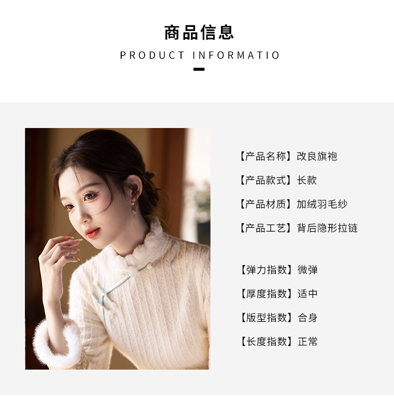 YG-2499蓝色旗袍秋冬款加绒加厚独特绝美小个子改良年轻款年会