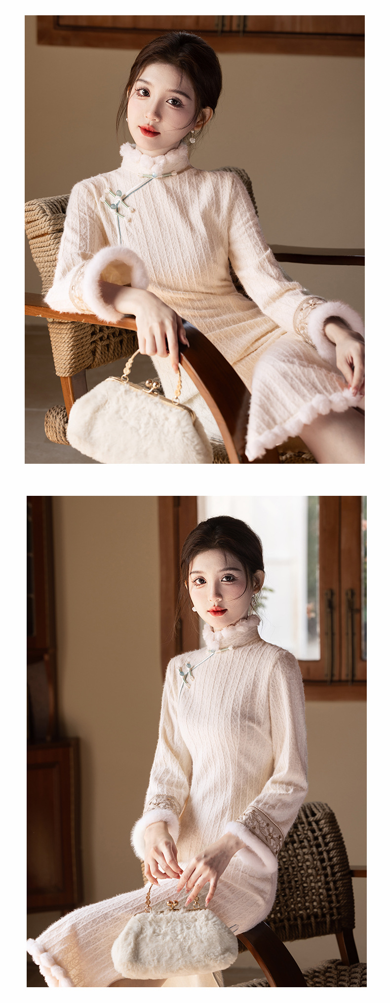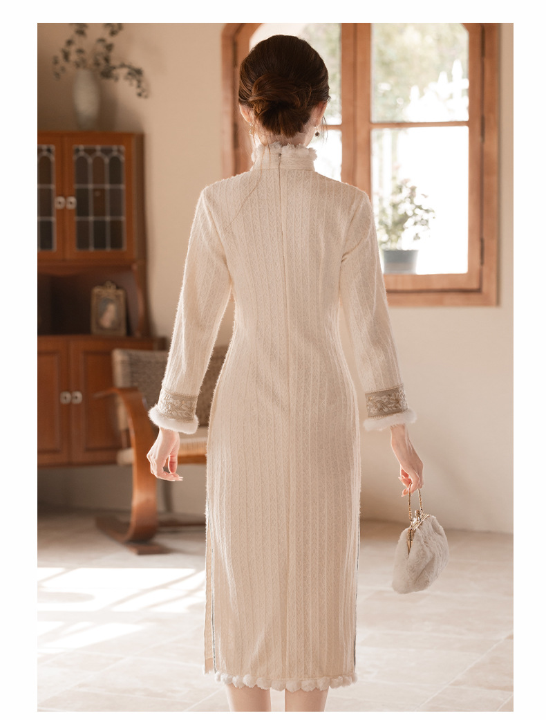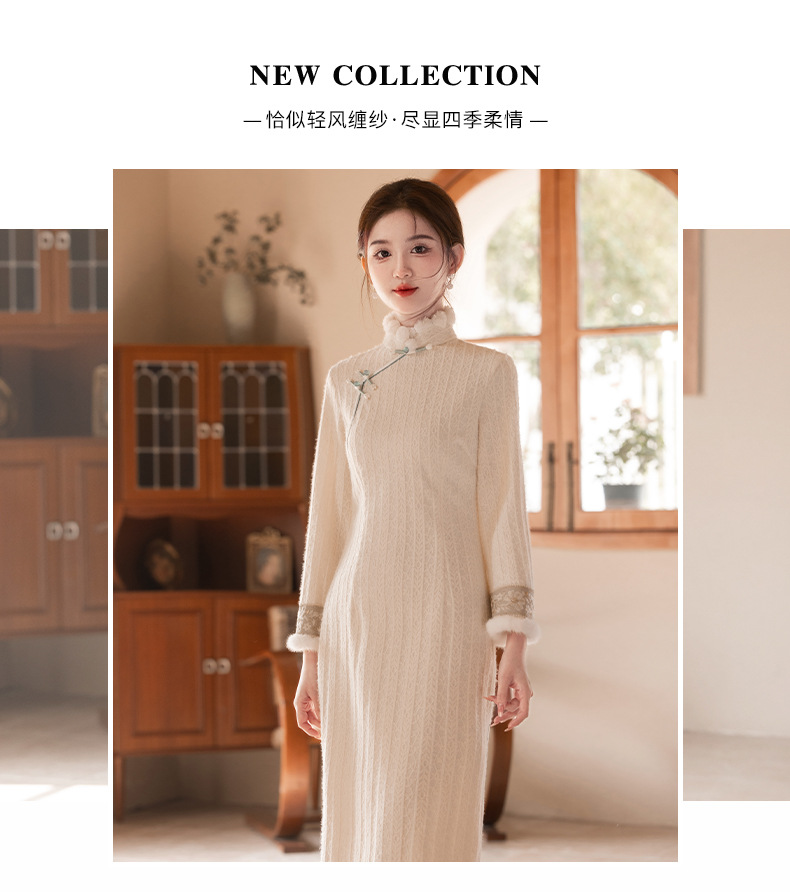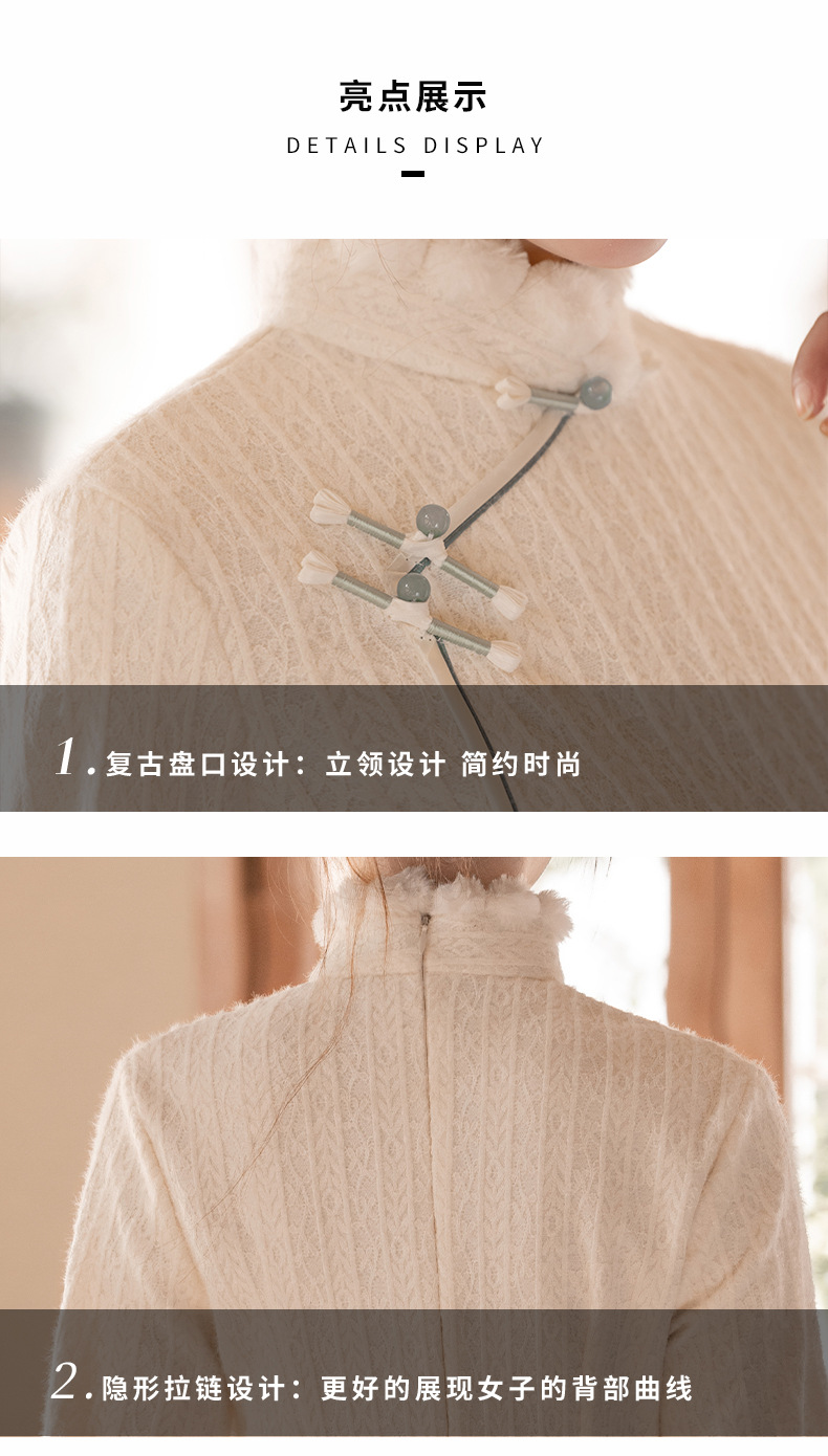 YG-2499蓝色旗袍秋冬款加绒加厚独特绝美小个子改良年轻款年会