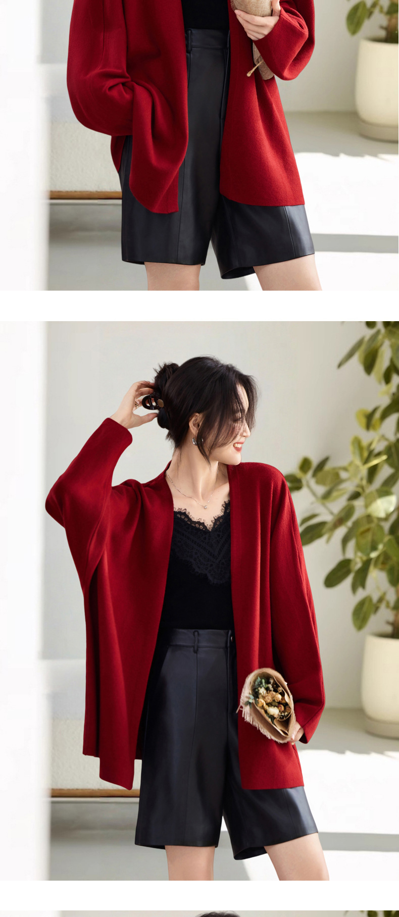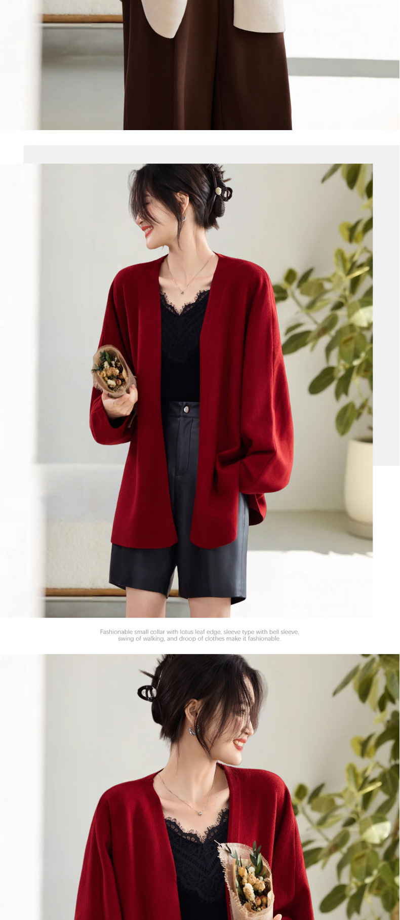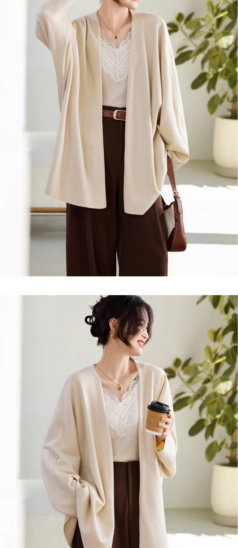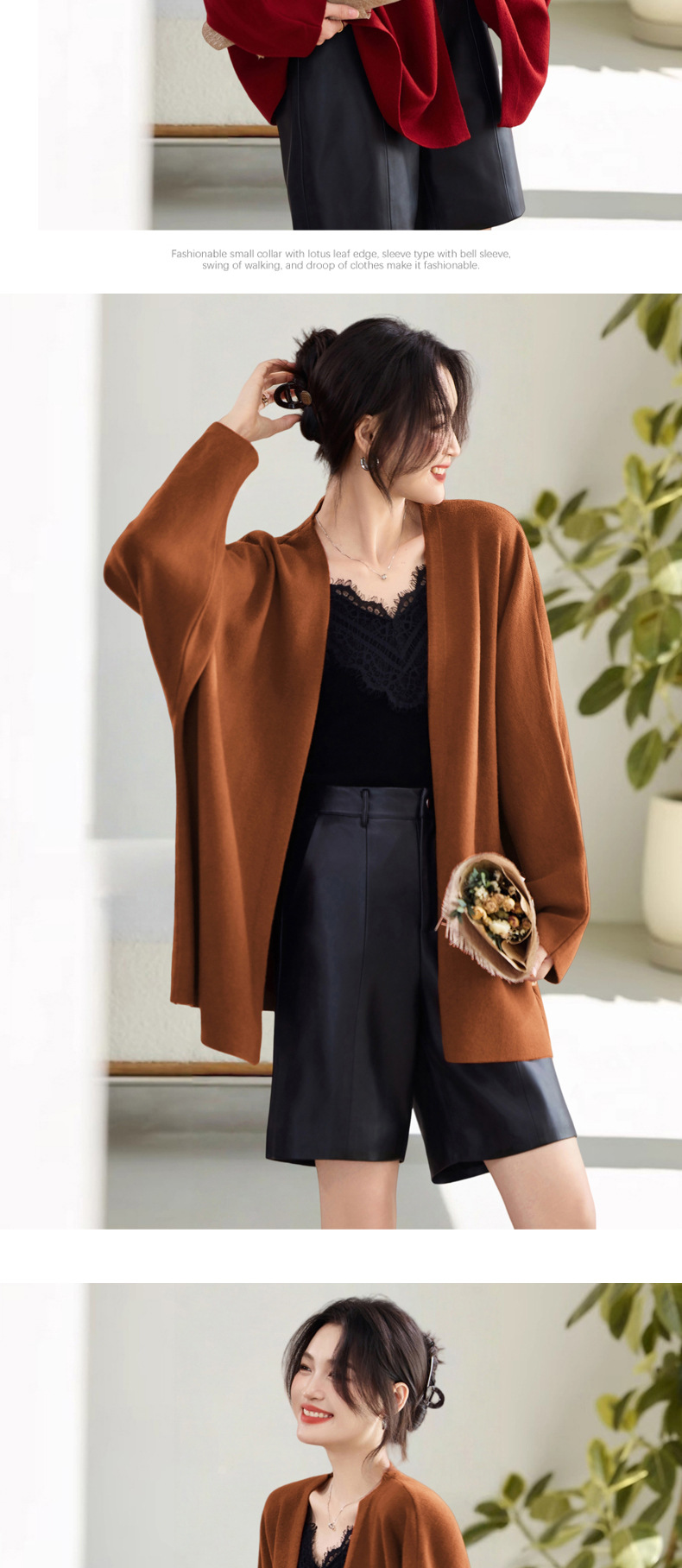 2025秋冬新款慵懒披肩针织开衫中长款微胖长袖外套气质外搭女毛衣