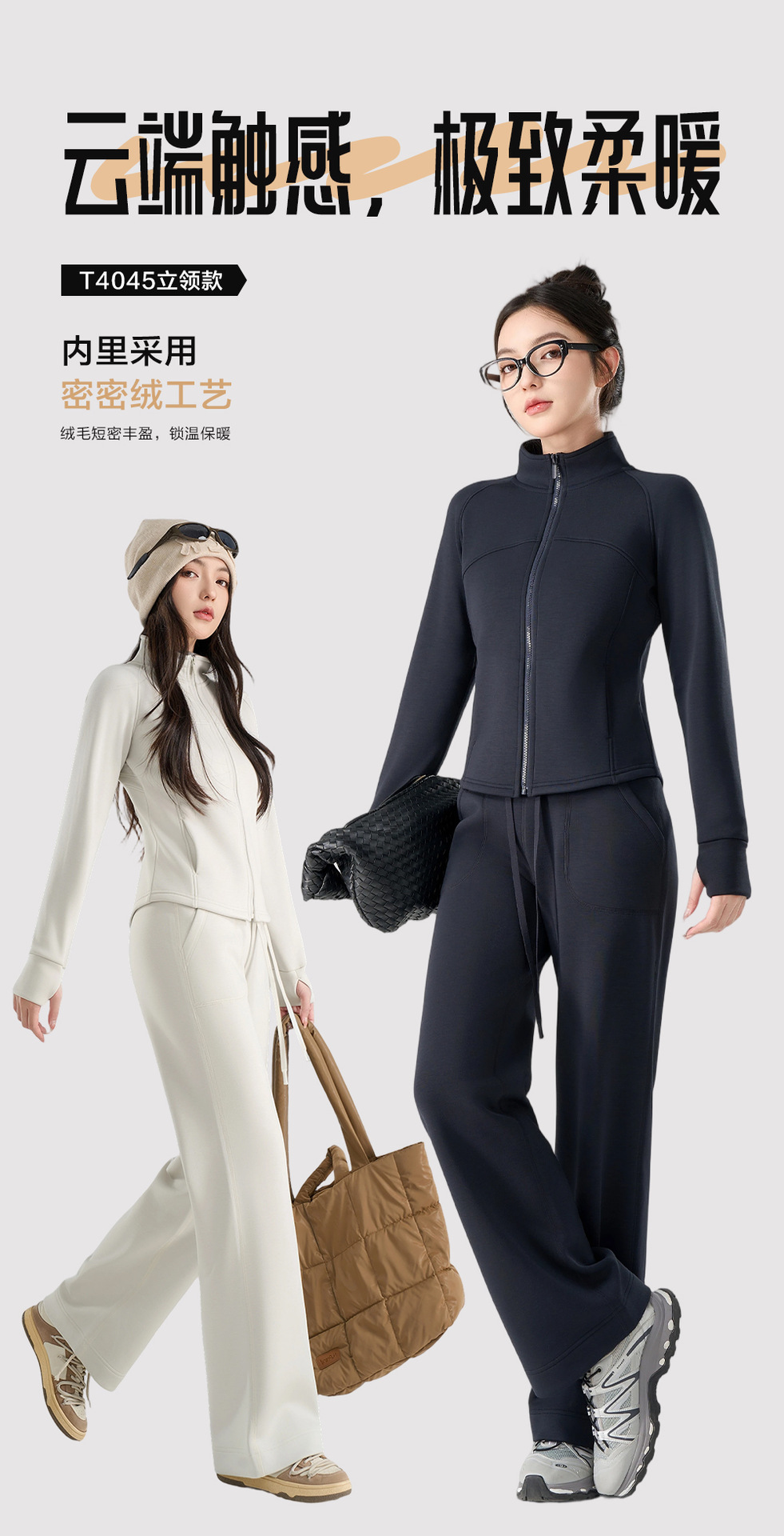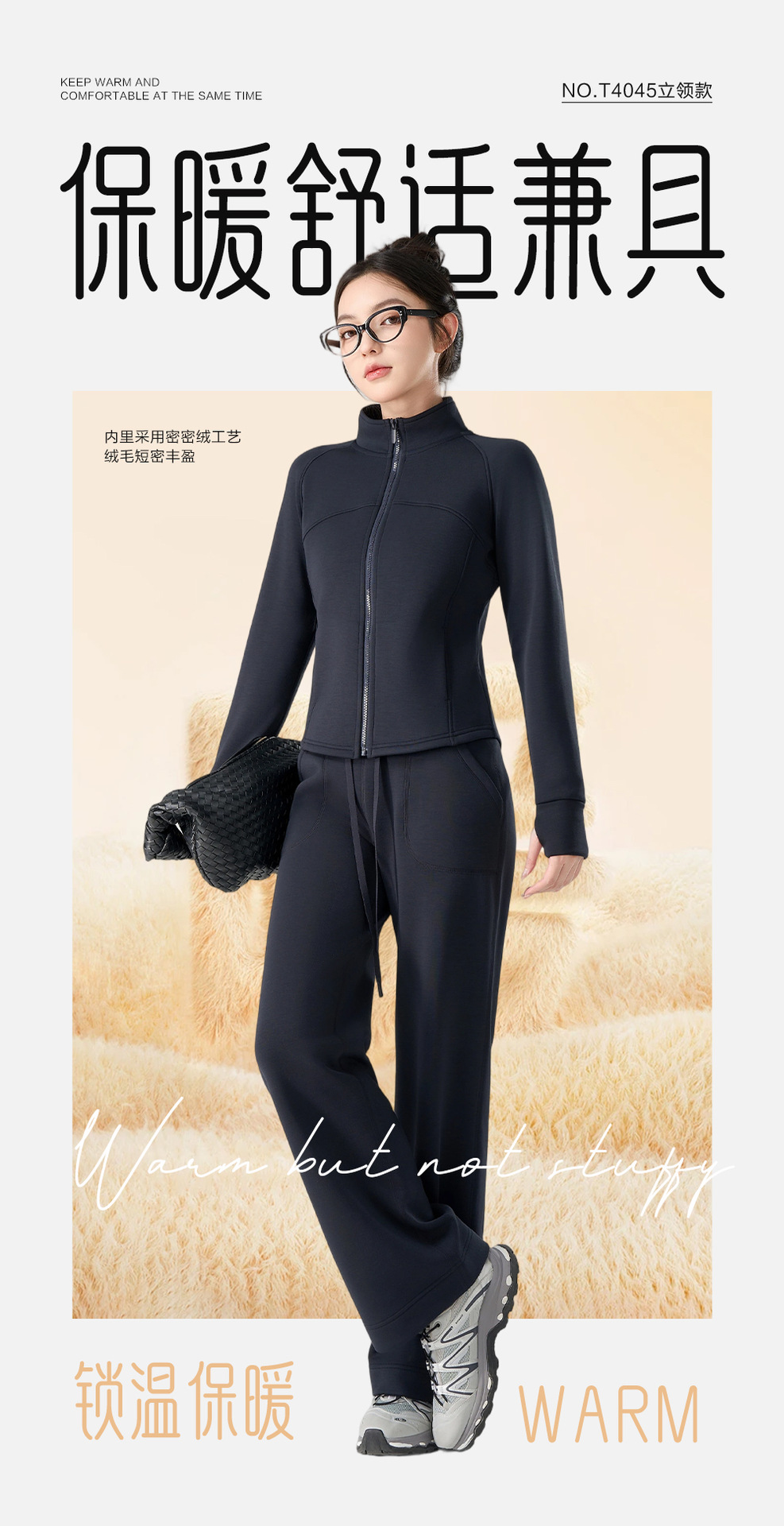 百媚生 秋冬季保暖加绒休闲运动两件套5T46