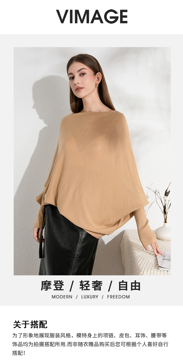 VIMAGE纬漫纪秋季新款落肩圆领慵懒时尚毛衣针织衫VC2401306
