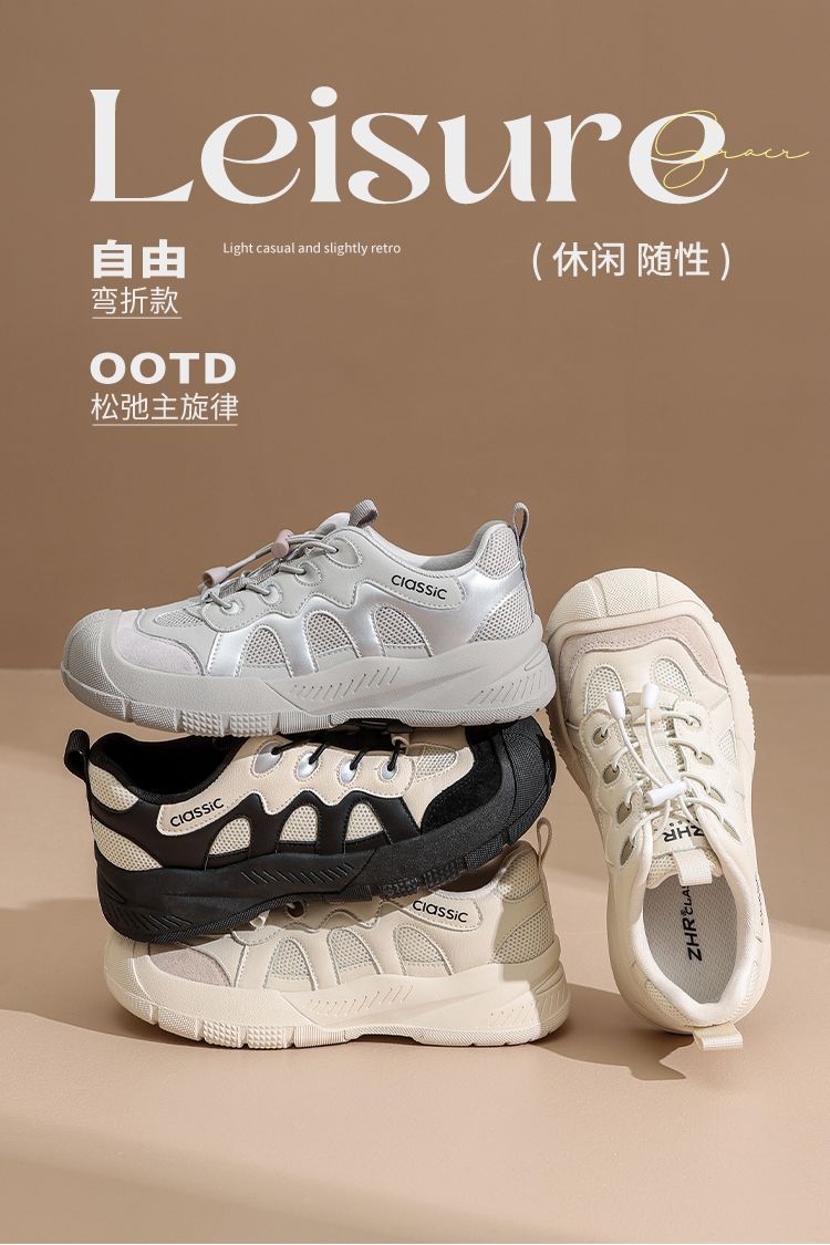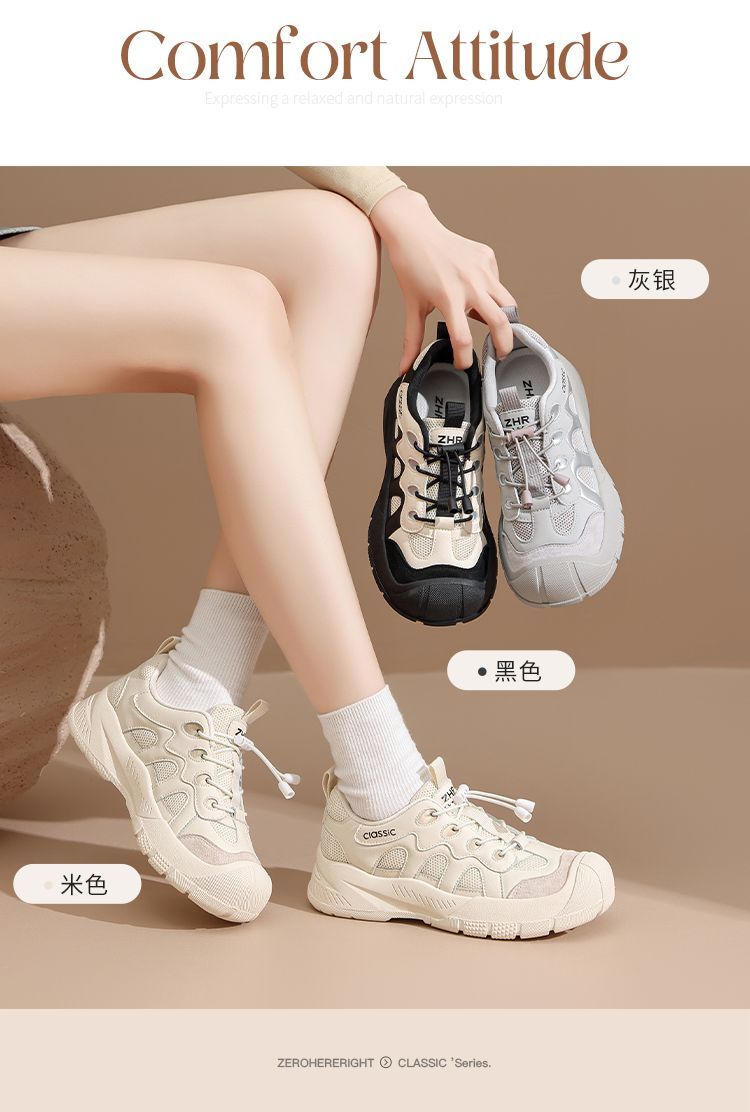 ZHR厚底户外休闲鞋女2025秋季新款透气丑萌徒步登山鞋百搭运动鞋