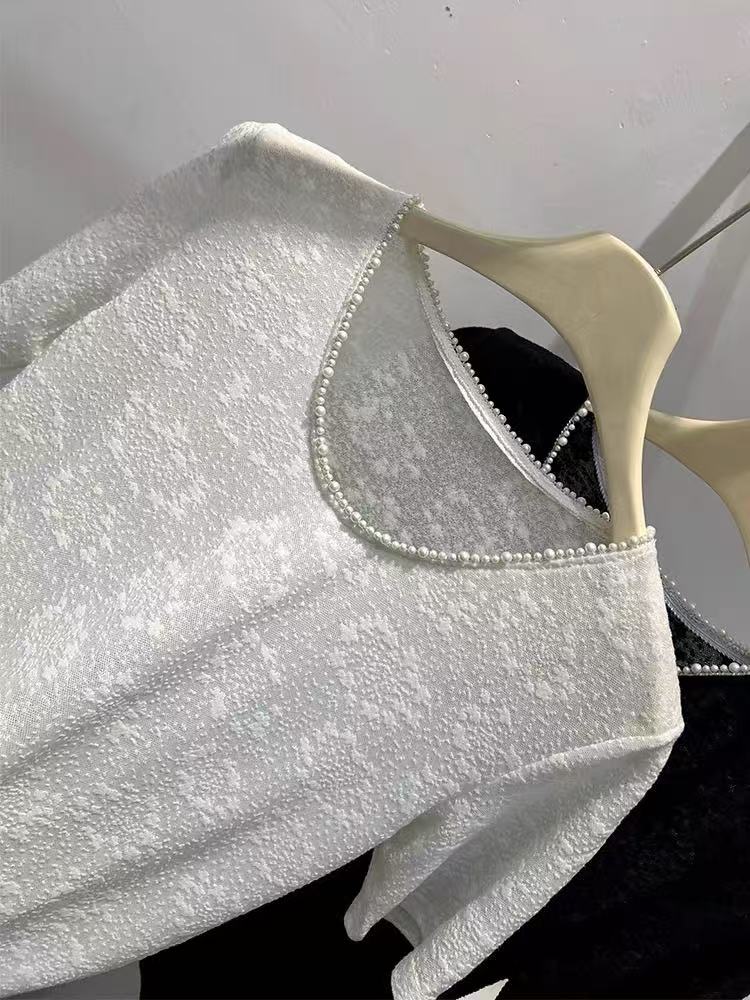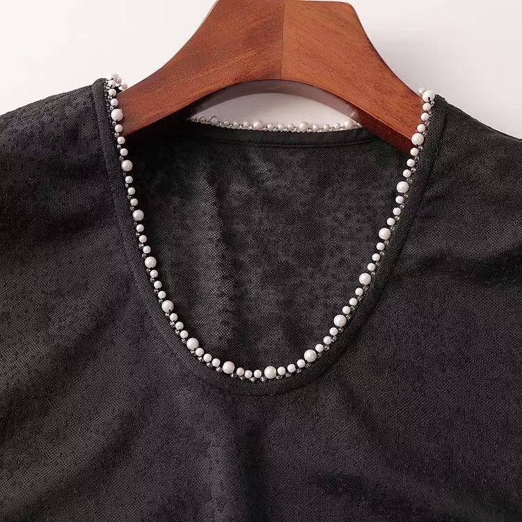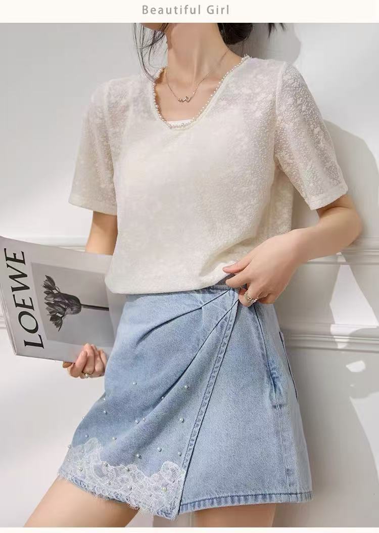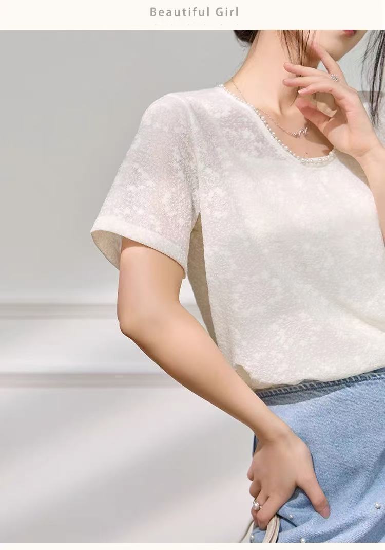 【节日特卖】6820 小U珍珠领提花短袖小衫-喜出
