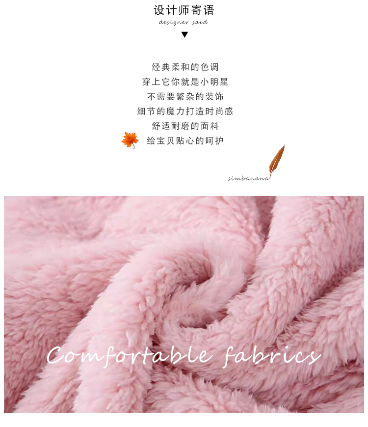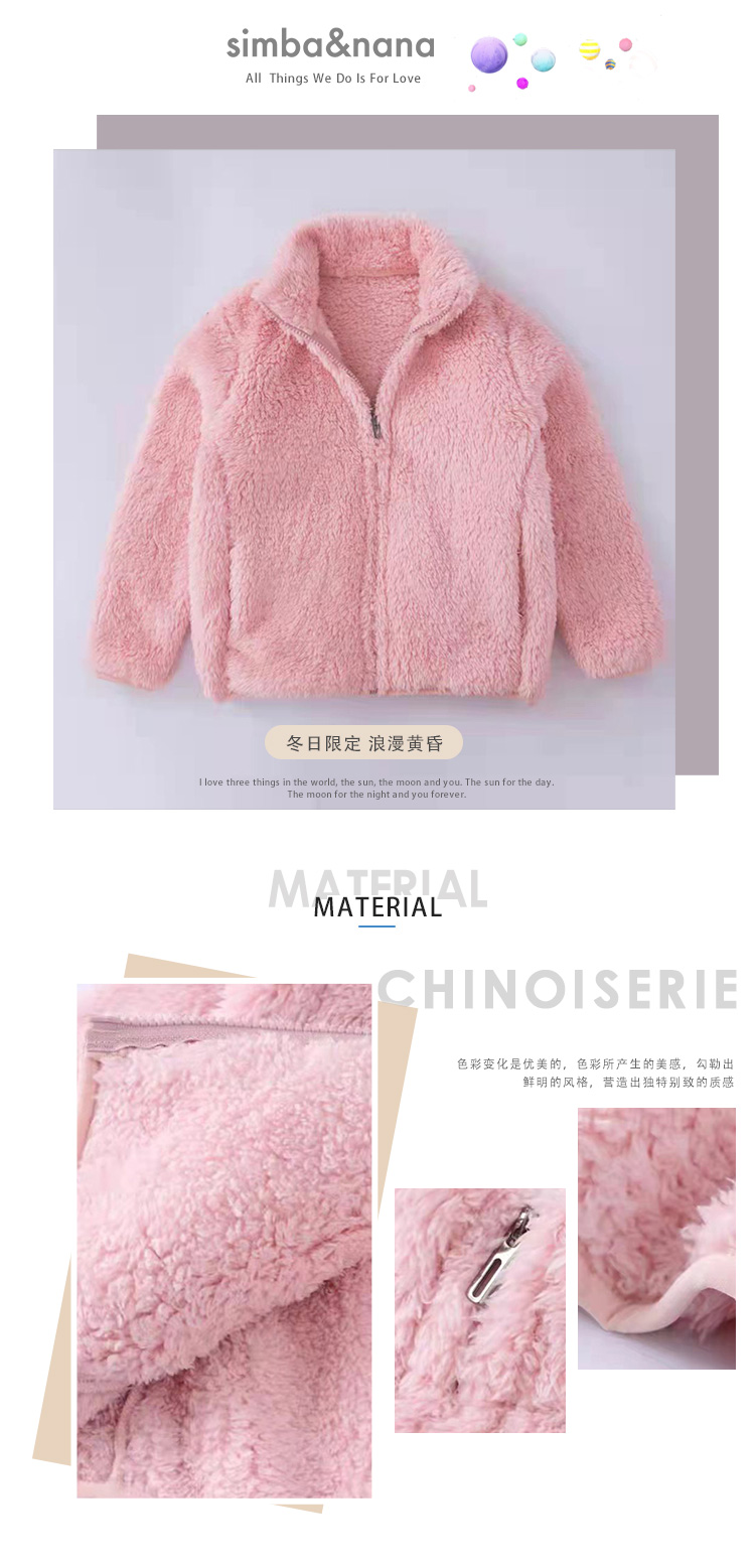 【辛巴娜娜】simbanana【大童】儿童秋冬装毛绒外套女童摇粒绒长绒上衣珊瑚绒