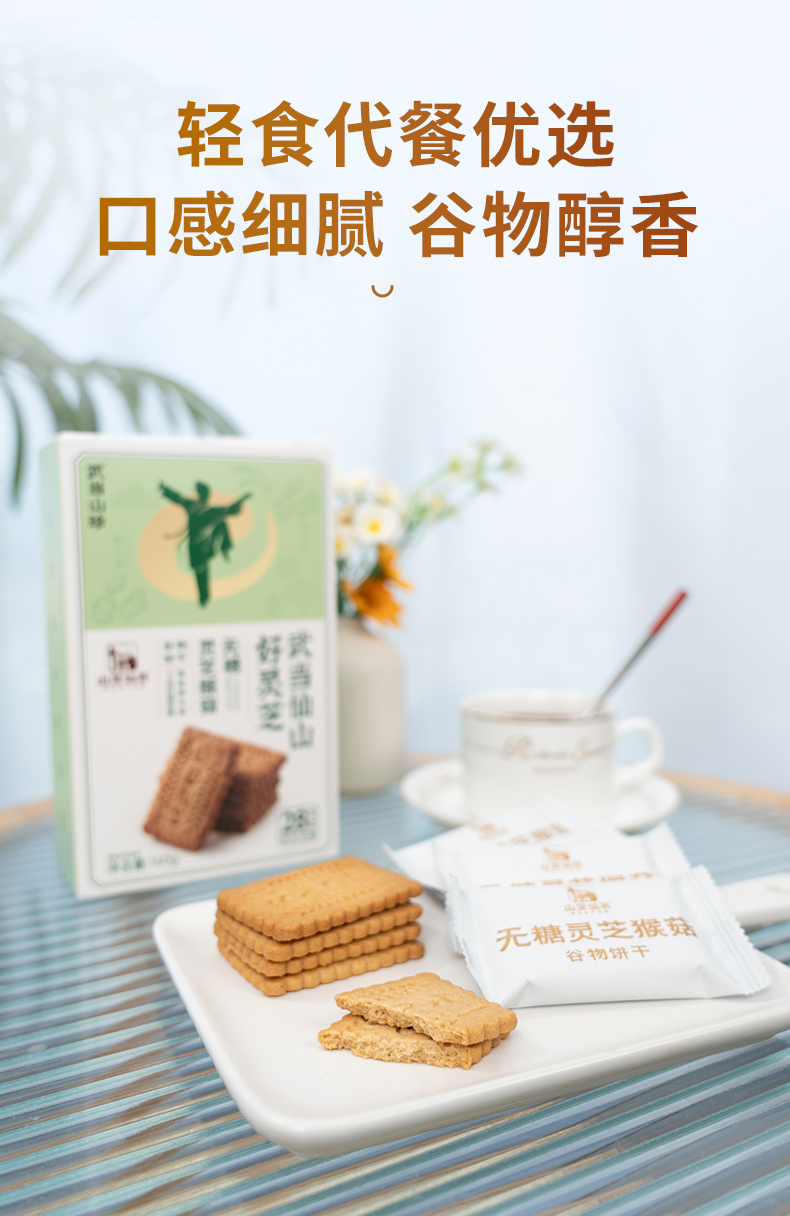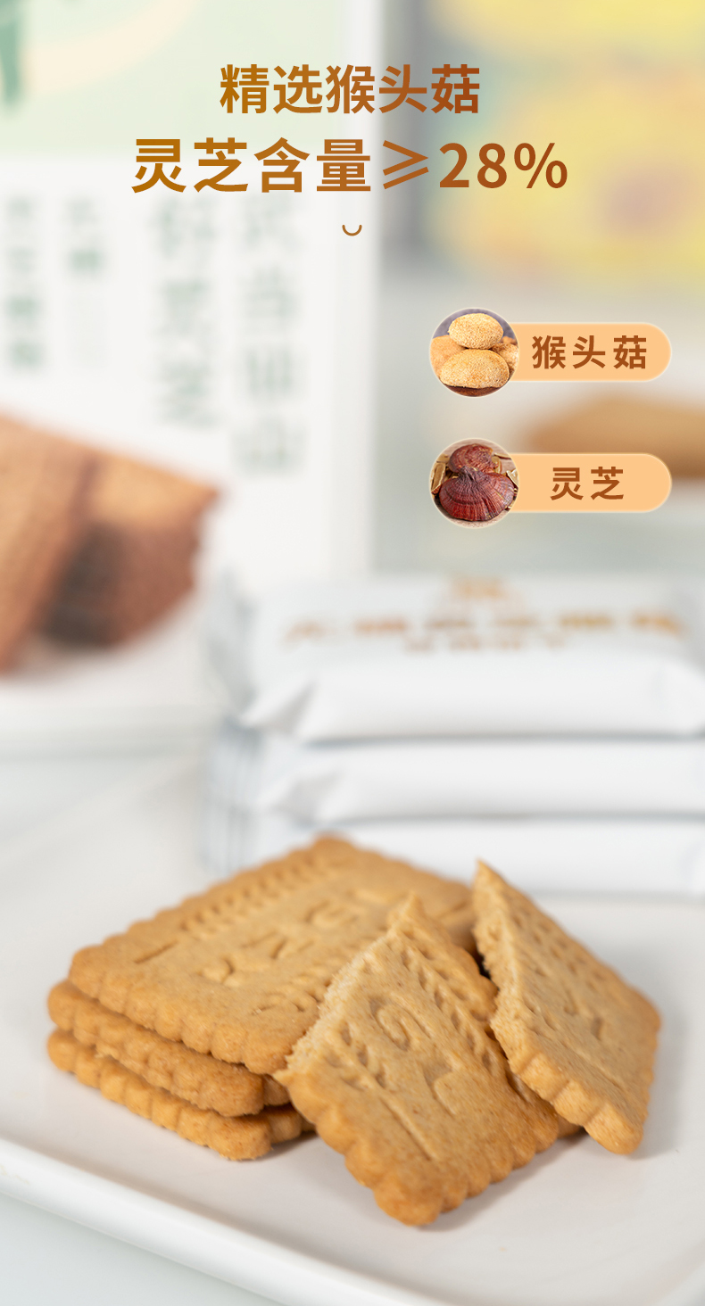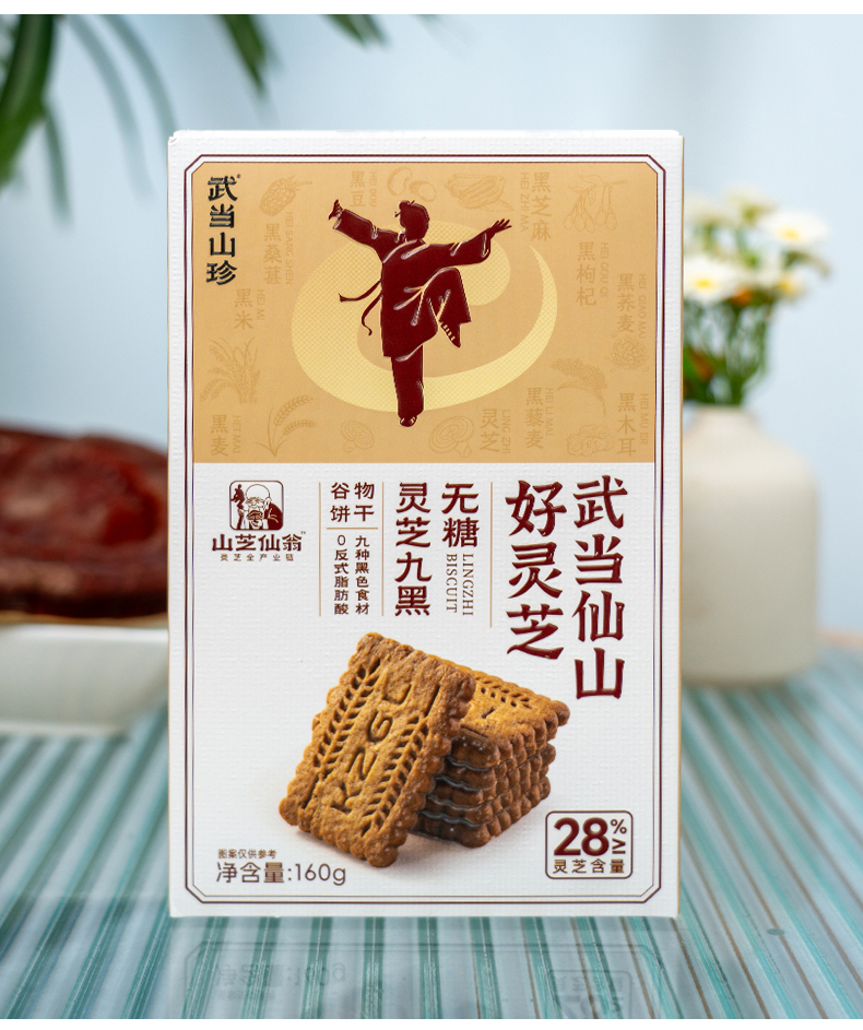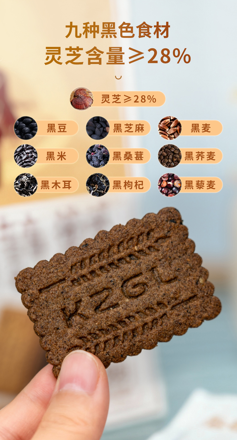 【大宅门】药食同源 灵芝谷物饼干 无蔗糖0反式脂肪酸160g/盒/10袋