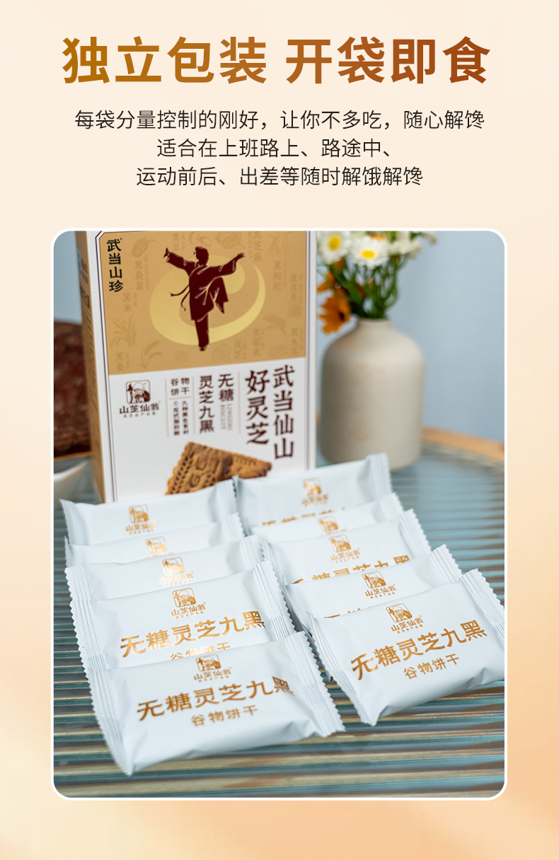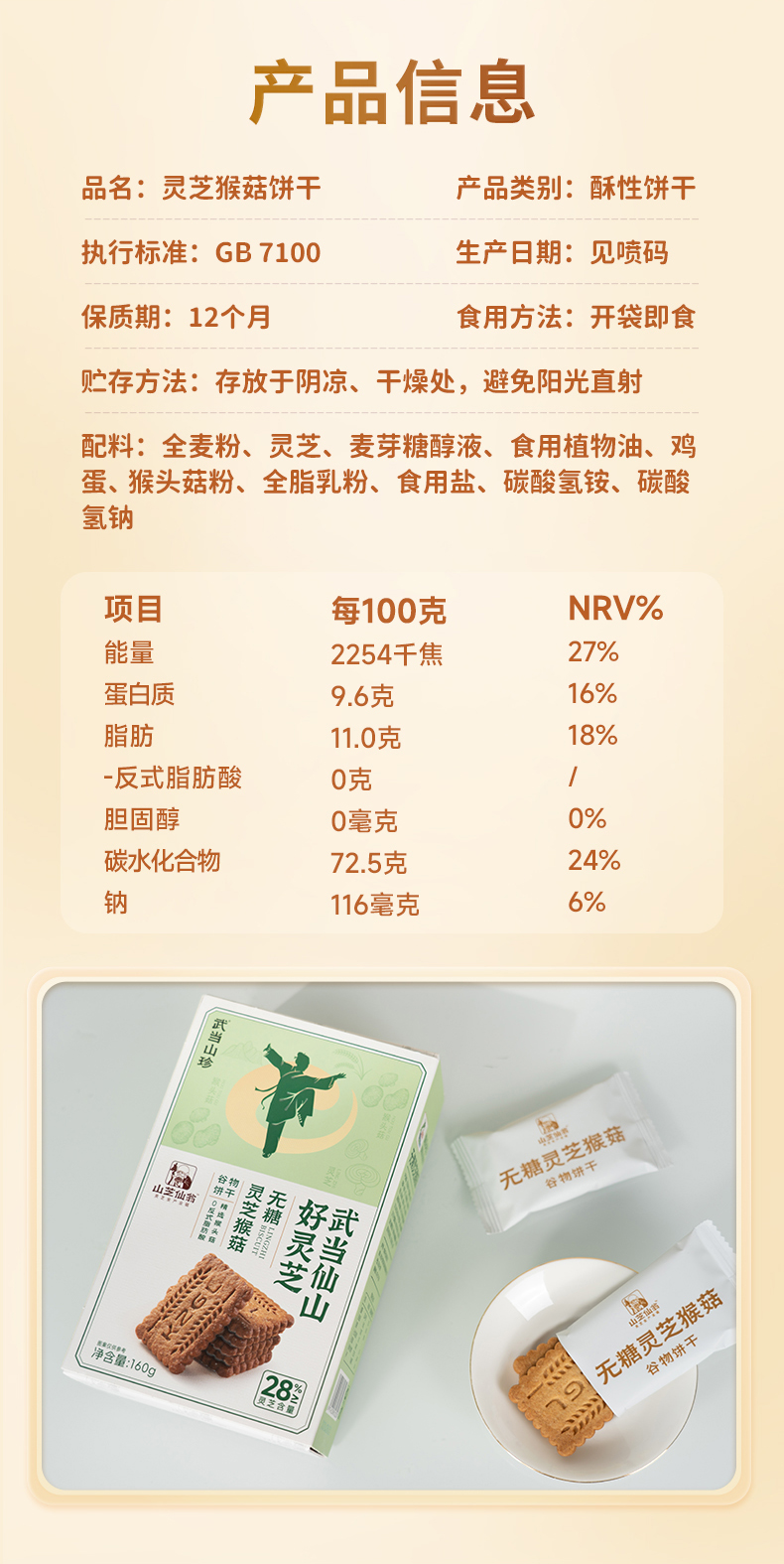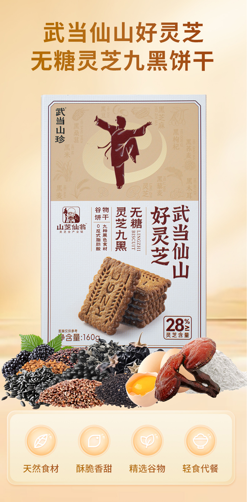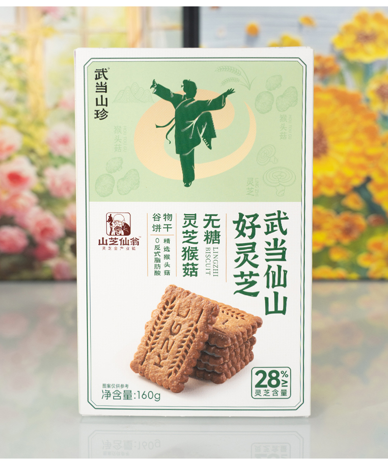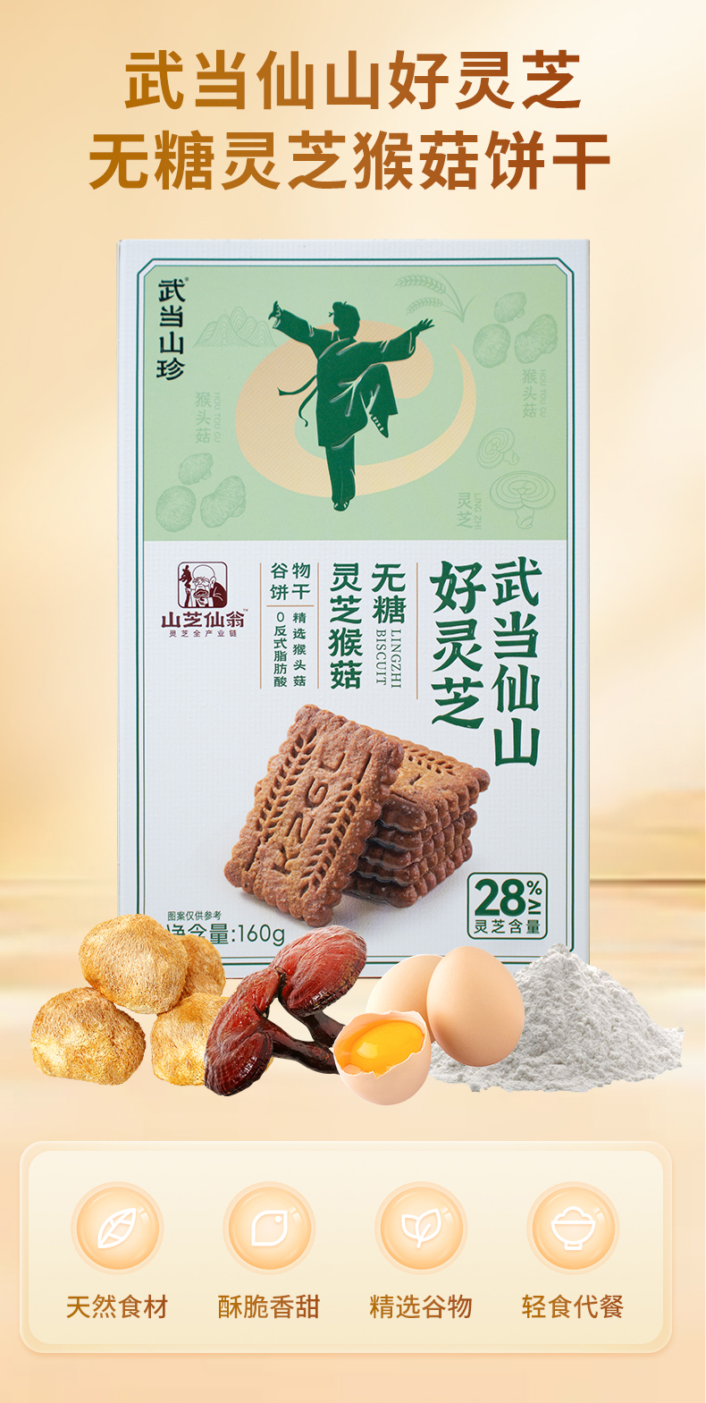 【大宅门】药食同源 灵芝谷物饼干 无蔗糖0反式脂肪酸160g/盒/10袋