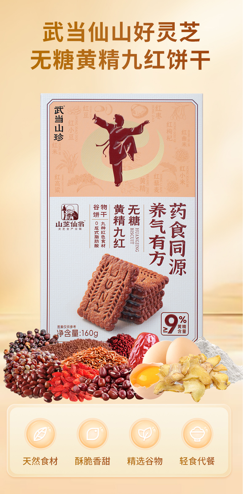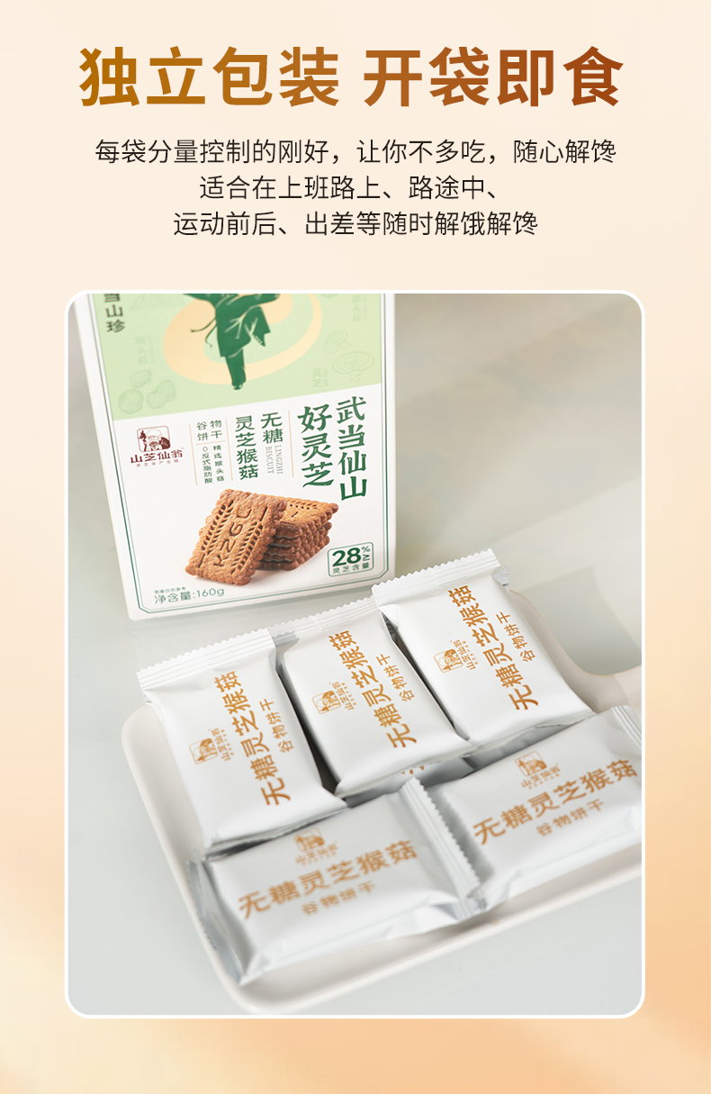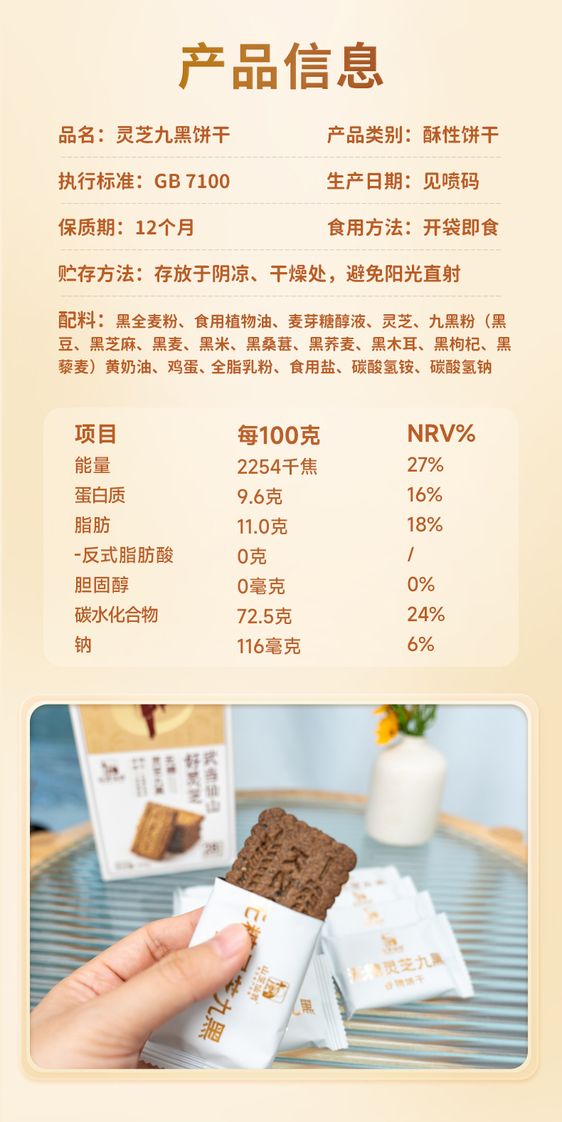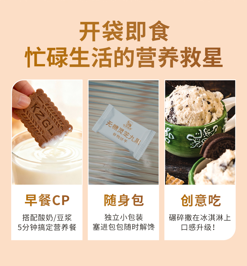 【大宅门】药食同源 灵芝谷物饼干 无蔗糖0反式脂肪酸160g/盒/10袋