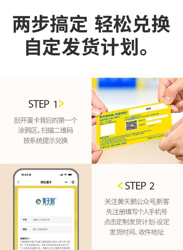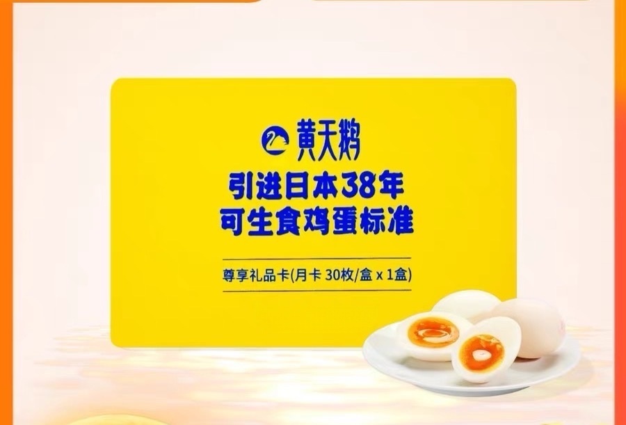 ④黄天鹅可生食鸡蛋 30枚盒装尊享礼品卡月卡(拿到卡后按卡背后说明兑换货品)