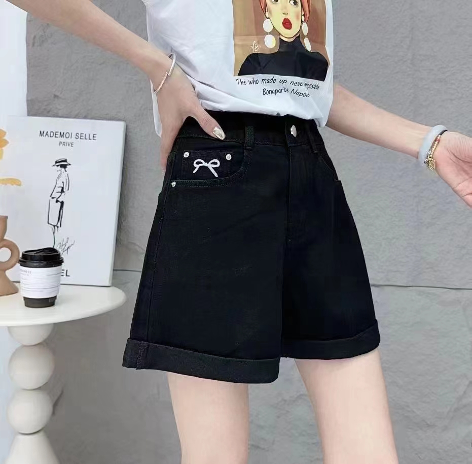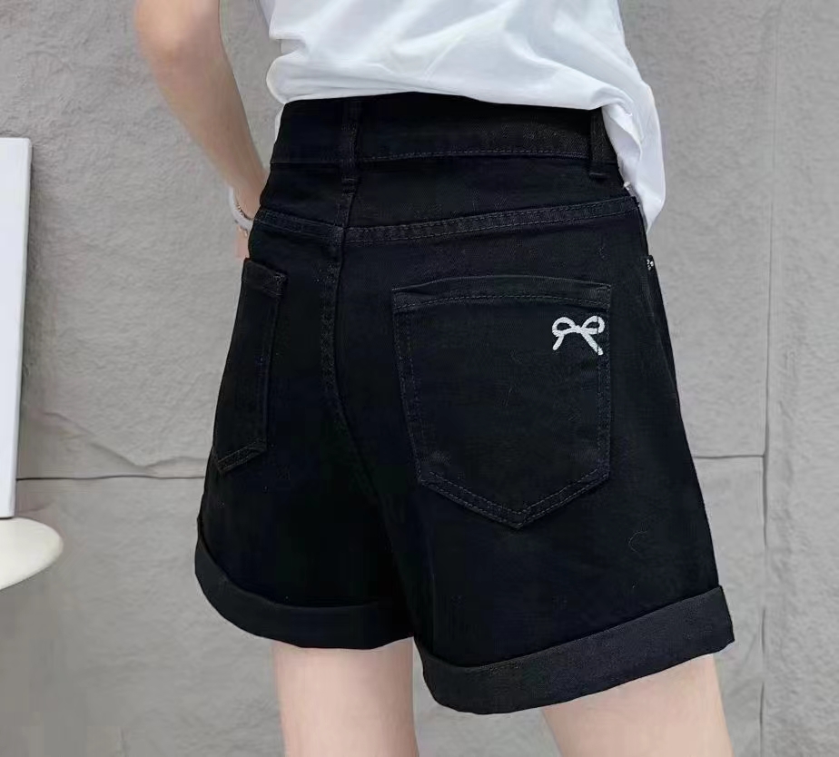 6.30清仓(NO退,能接受拍)→66026卷边蝴蝶结刺绣/米标牛仔短裤-喜出