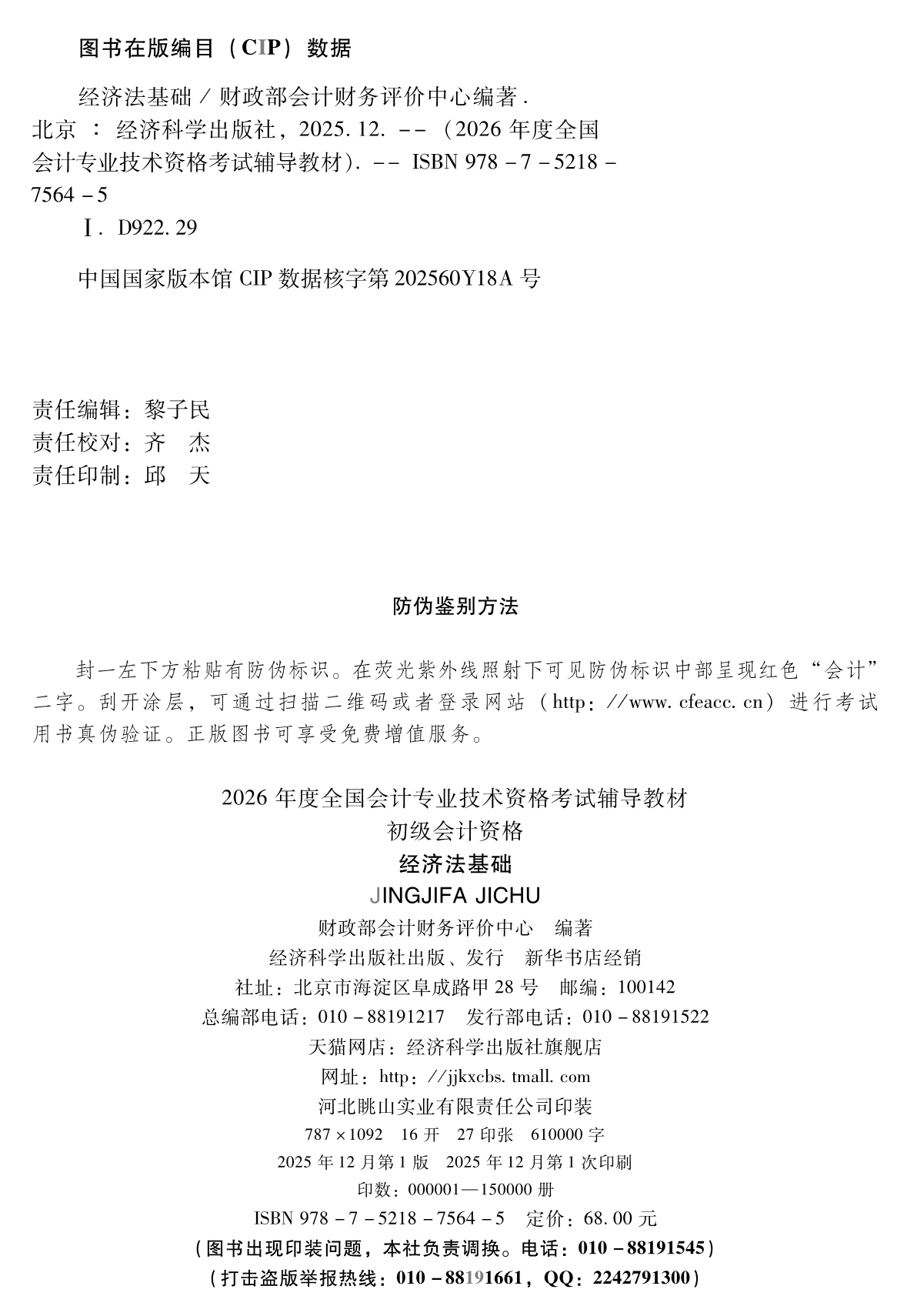 经济法基础--2026年《会考》初级教材 商品缩略图0