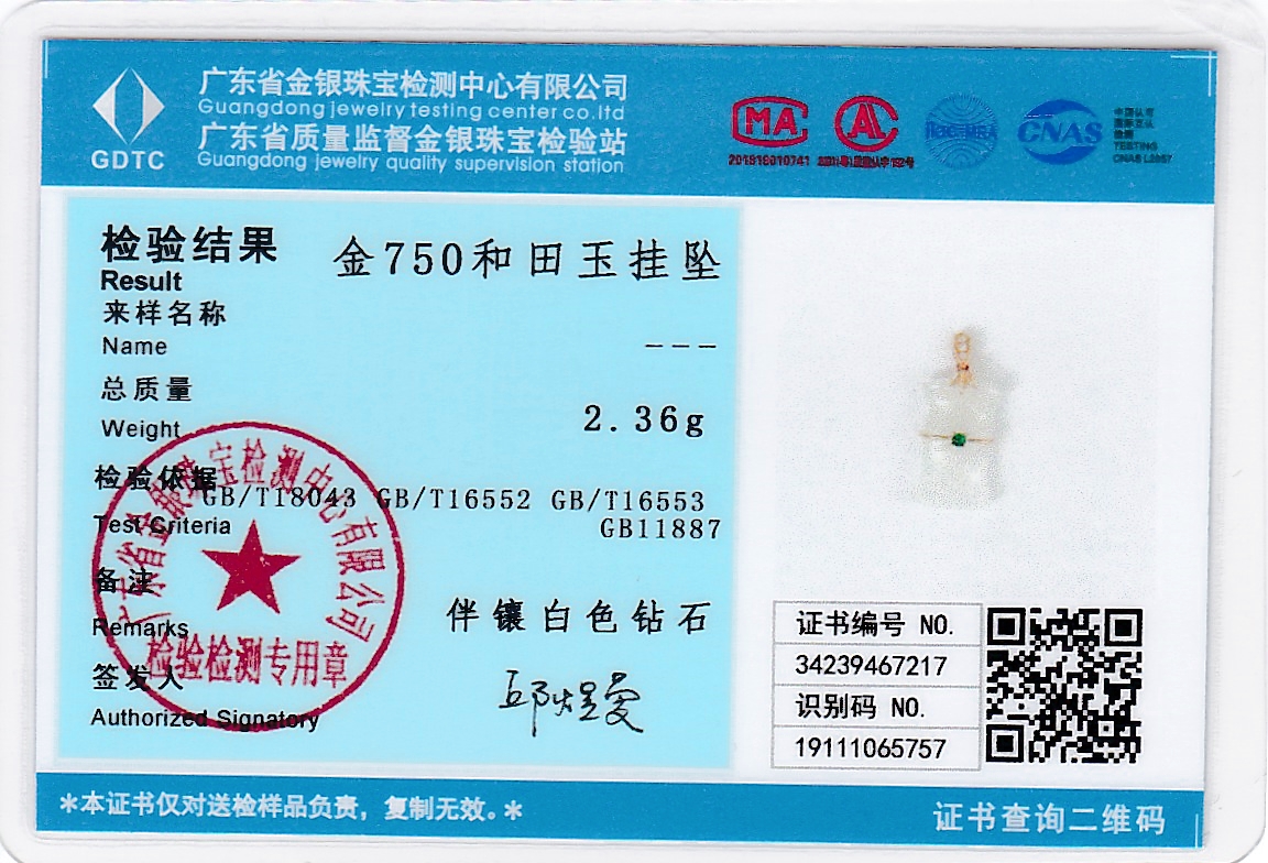 18k玫瑰金和田玉(白玉)镶钻吊坠