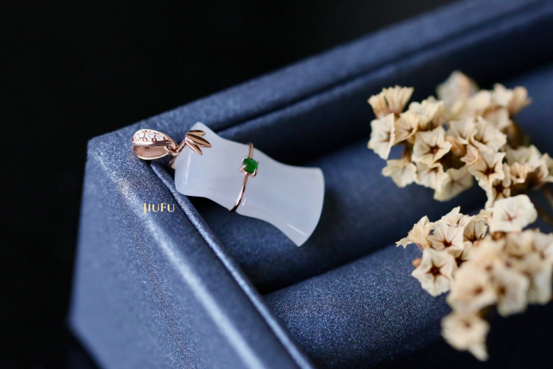 玉石尺寸:竹节11*18mm 配镶:钻石、翡翠