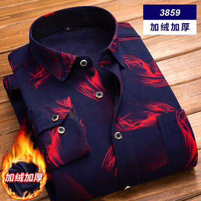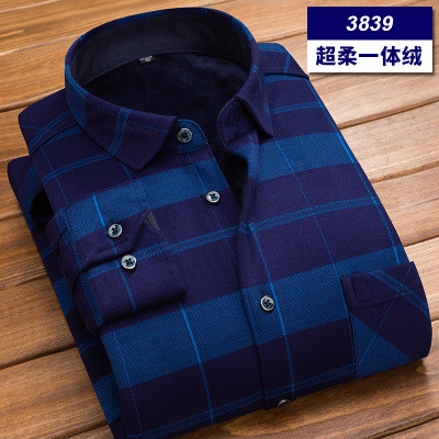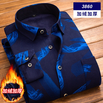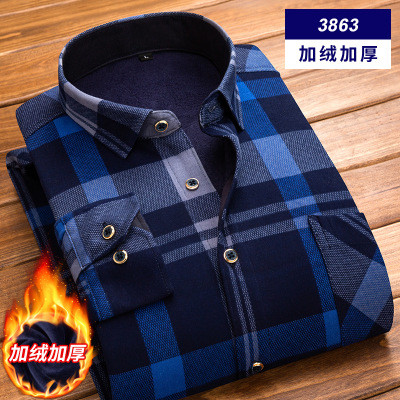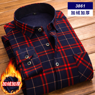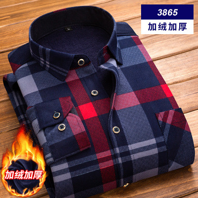 LY-BN秋季加绒加厚长袖衬衫男商务休闲中青年保暖衬衣